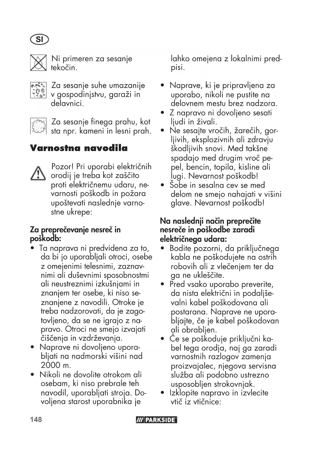 - Z napravo ni dovoljeno sesati lijudi in zivali.