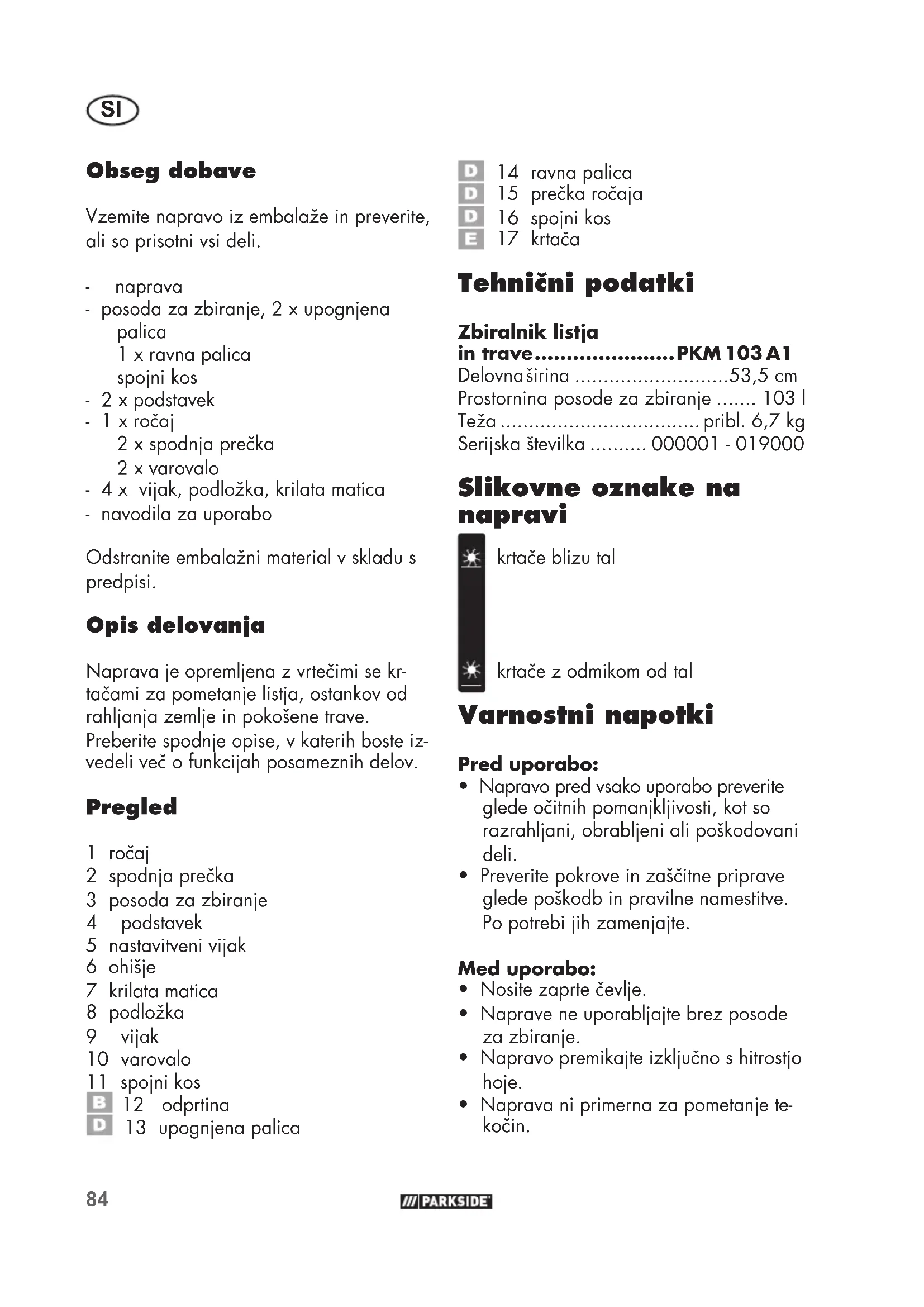NAVODILA ZA UPORABO PKM 103 A1 PARKSIDE