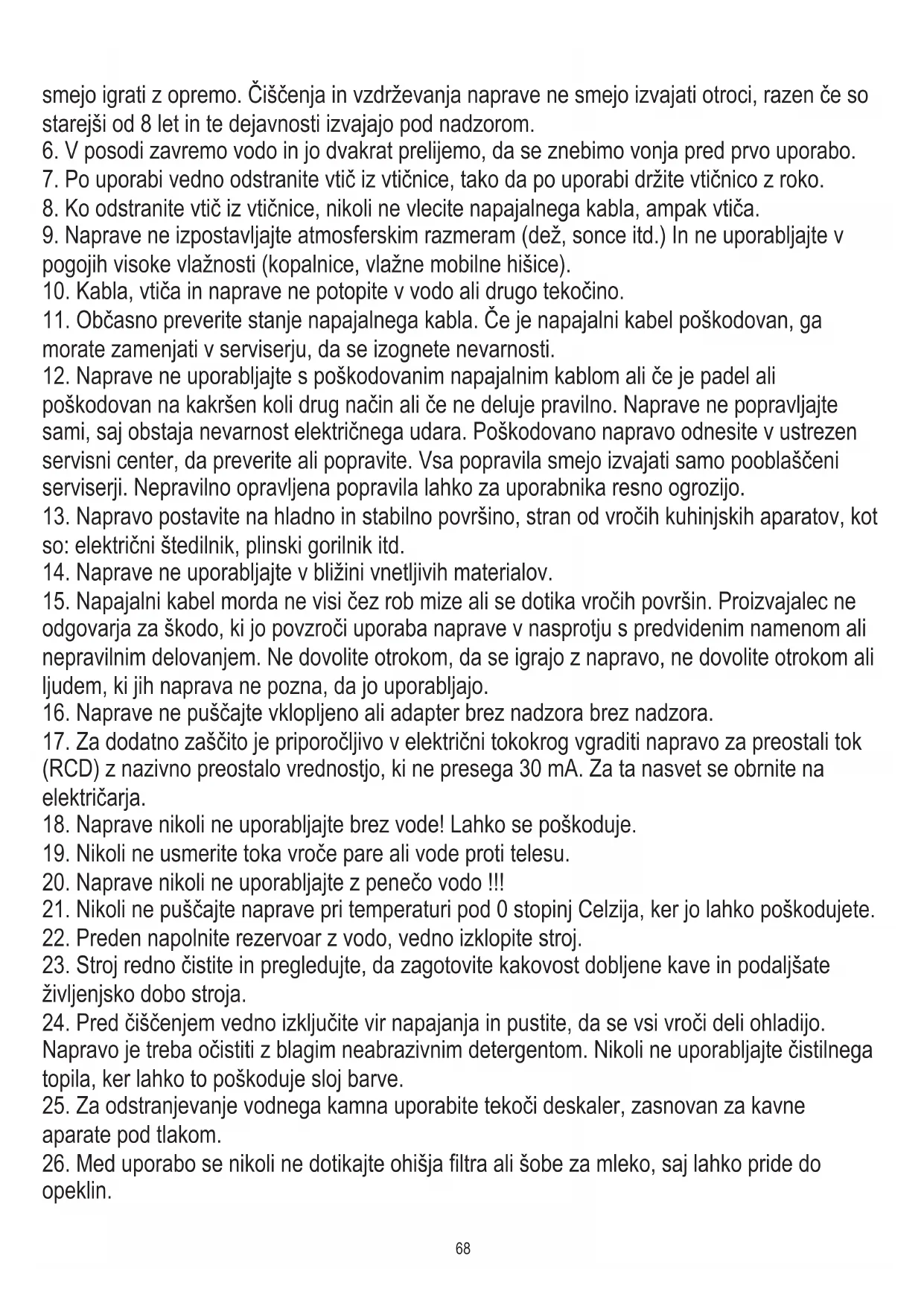 26. Med uporabo se nikoli ne dotikajte ohišja filtra ali šobe za mleko, saj lahko pride do