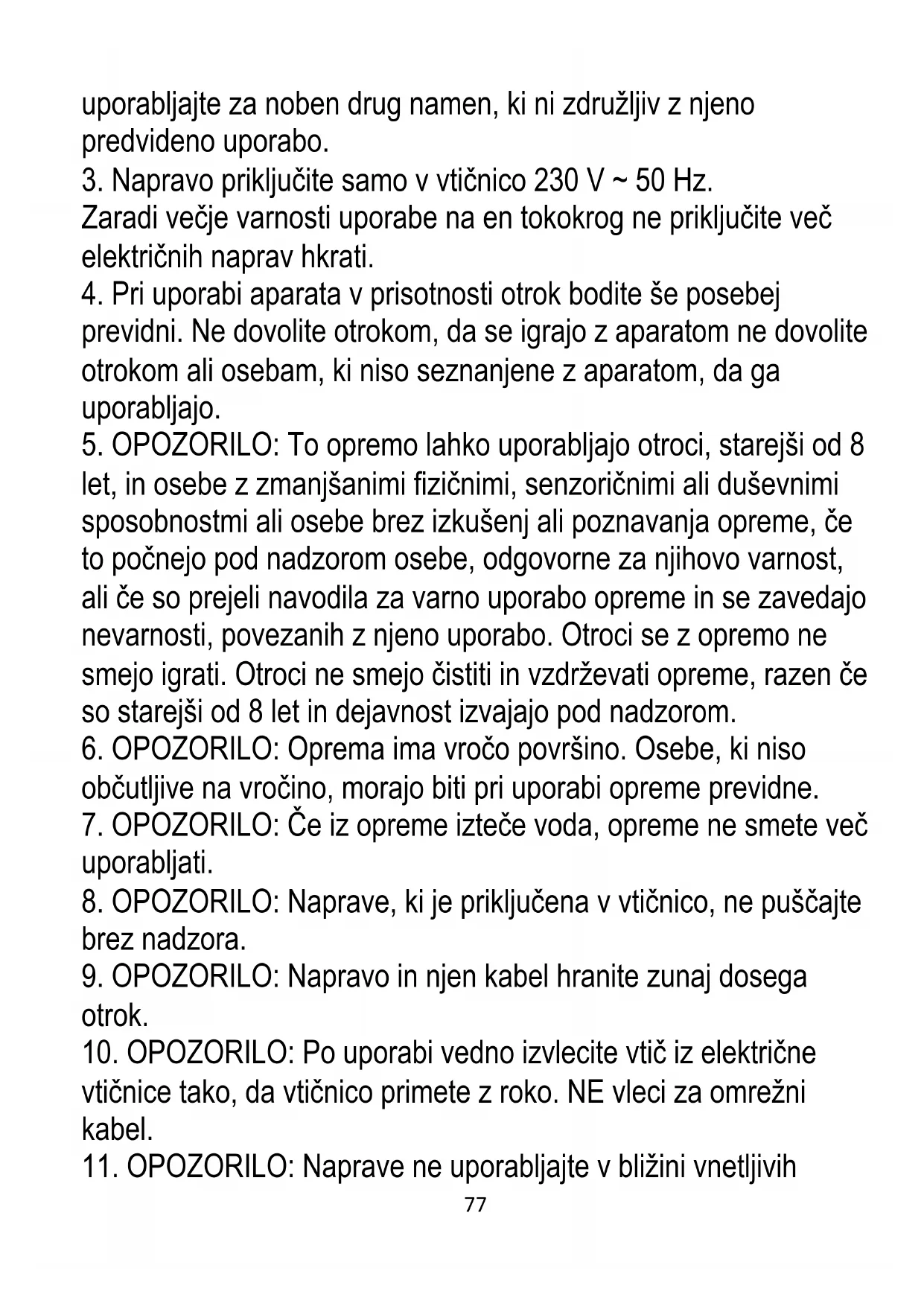 2. Naprava je namenjena samo za domačo uporabo. Naprave ne77