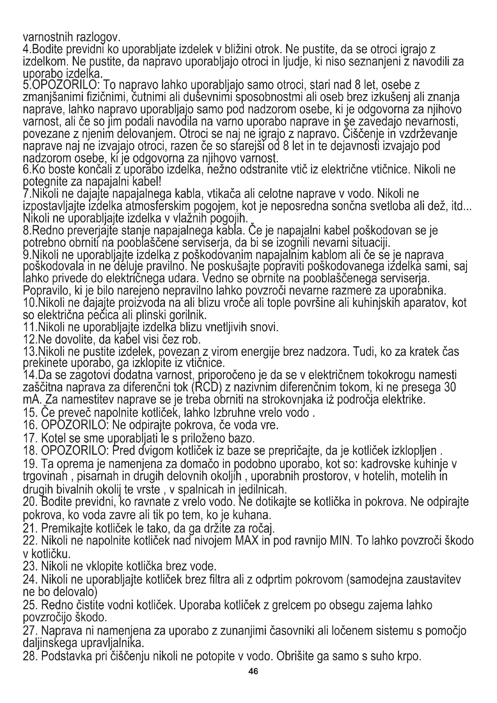 16. OPOZORILO: Ne odpirajte pokrova, če voda vre.