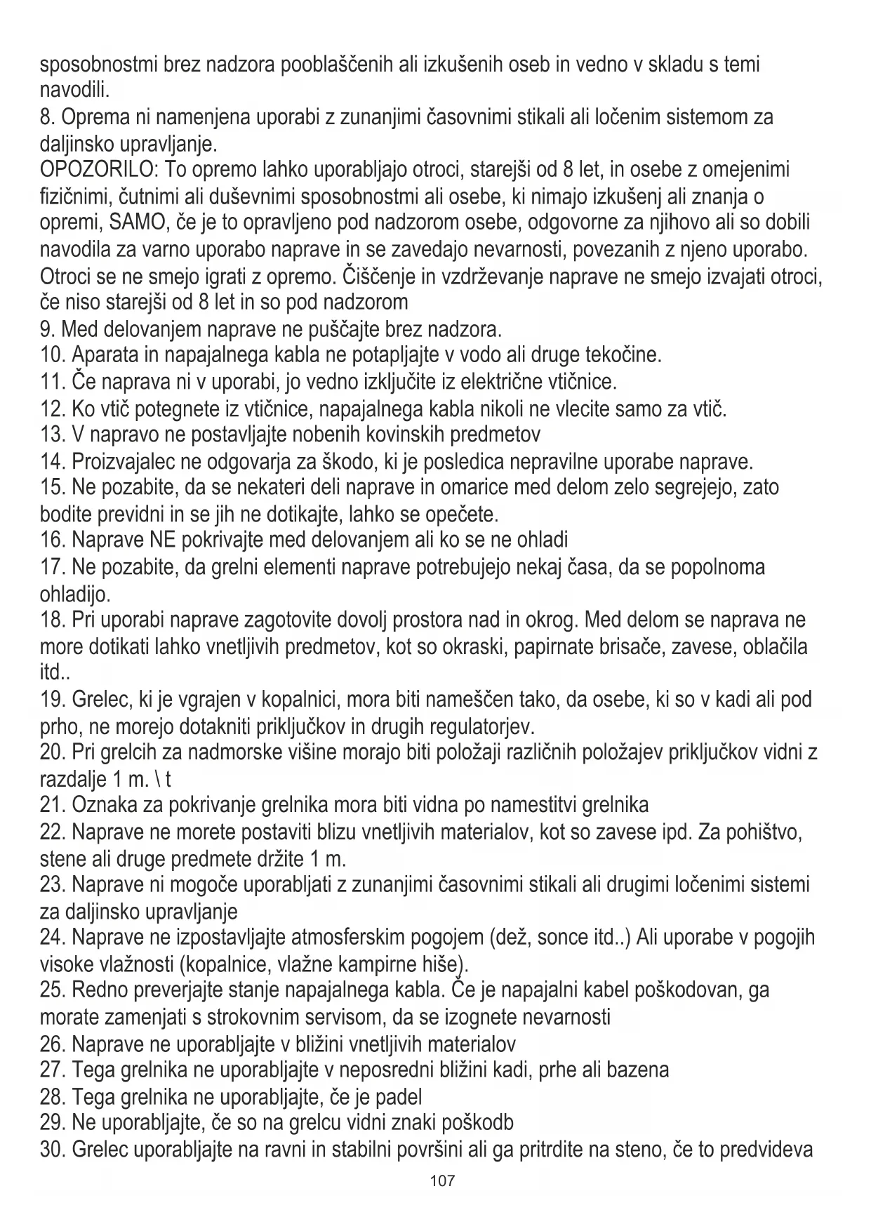 7. Naprave ne smejo uporabljati otroci, osebe z omejenimi fizičnimi, čutnimi ali duševnimi107