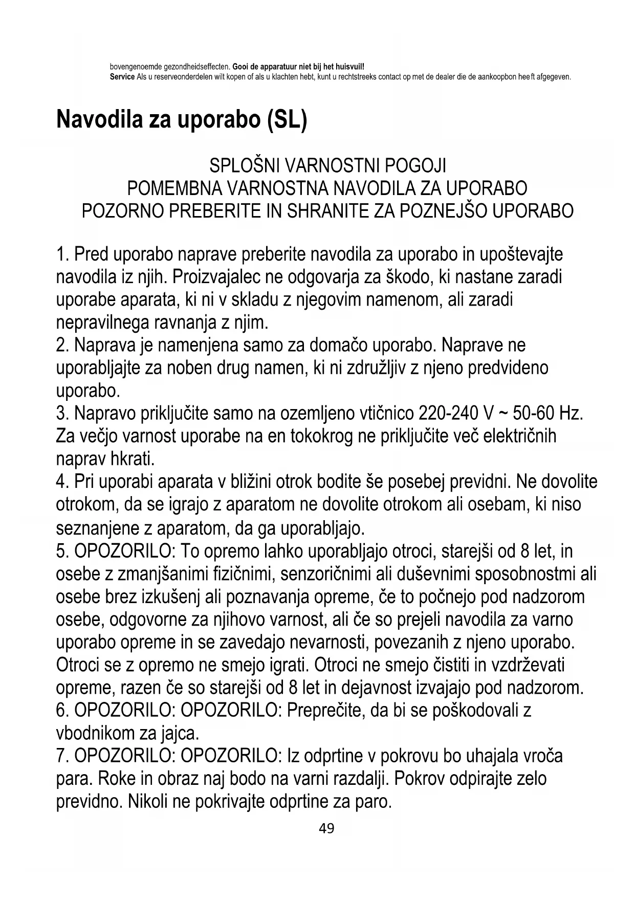 navodila iz njih. Proizvajalec ne odgovarja za škodo, ki nastane zaradi uporabe aparata, ki ni v skladu z njegovim namenom, ali zaradi nepravilnega ravnanja z njim.