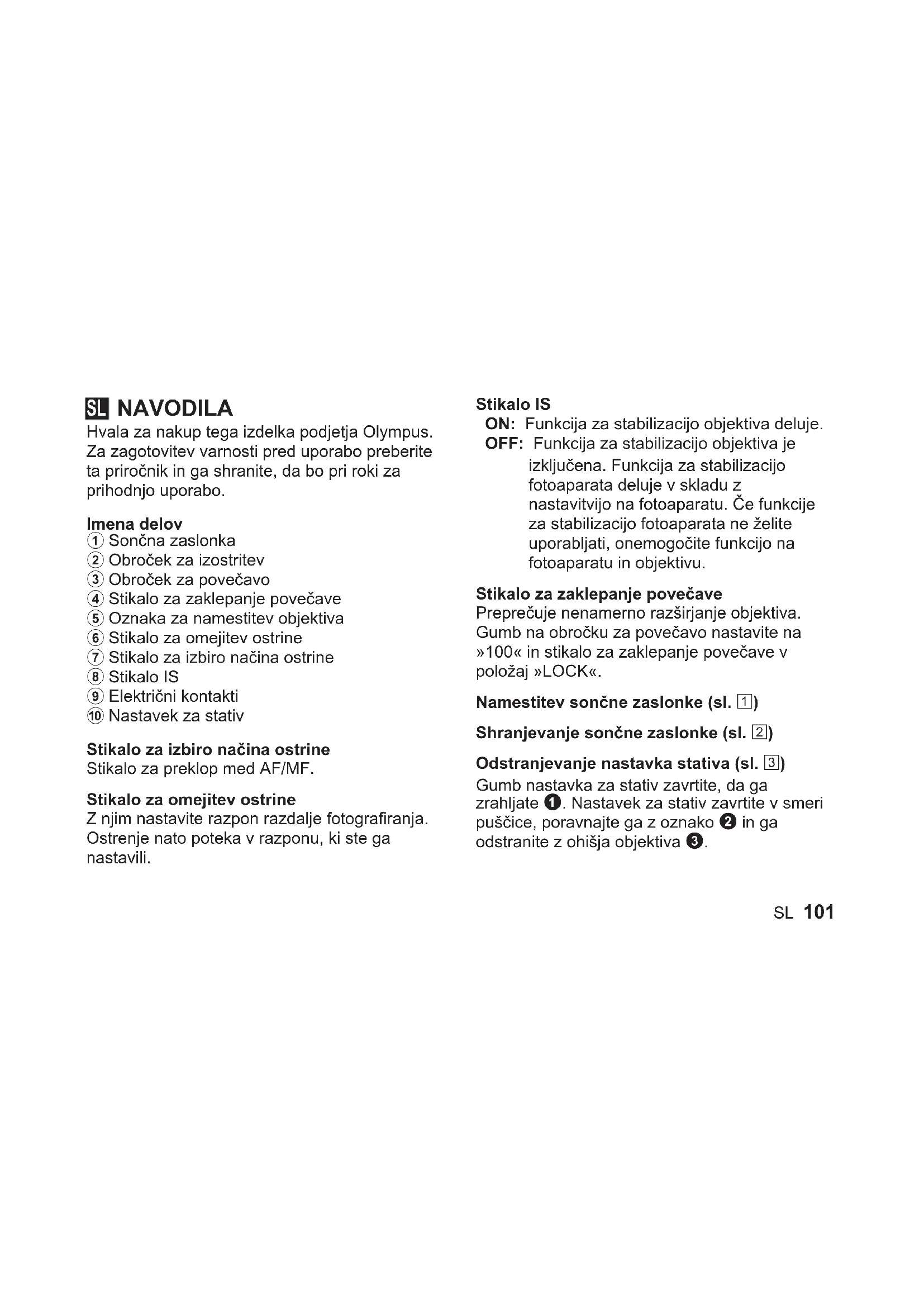 NAVODILA ZA UPORABO M.Zuiko Digital ED 100400mm f56.3 IS OLYMPUS