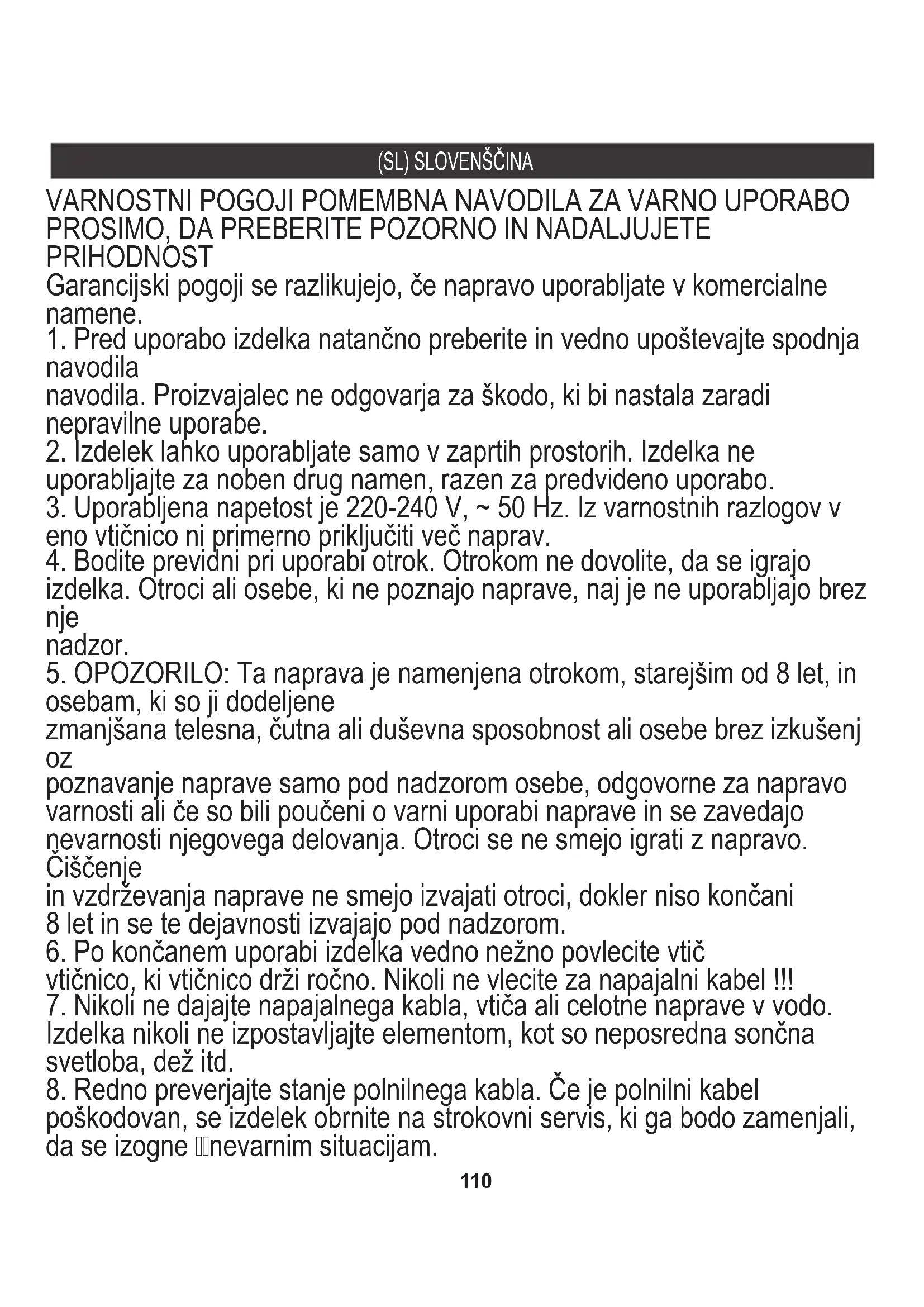 navodila Garancijski pogoji se razlikujejo, če napravo uporabljate v komercialne namene.