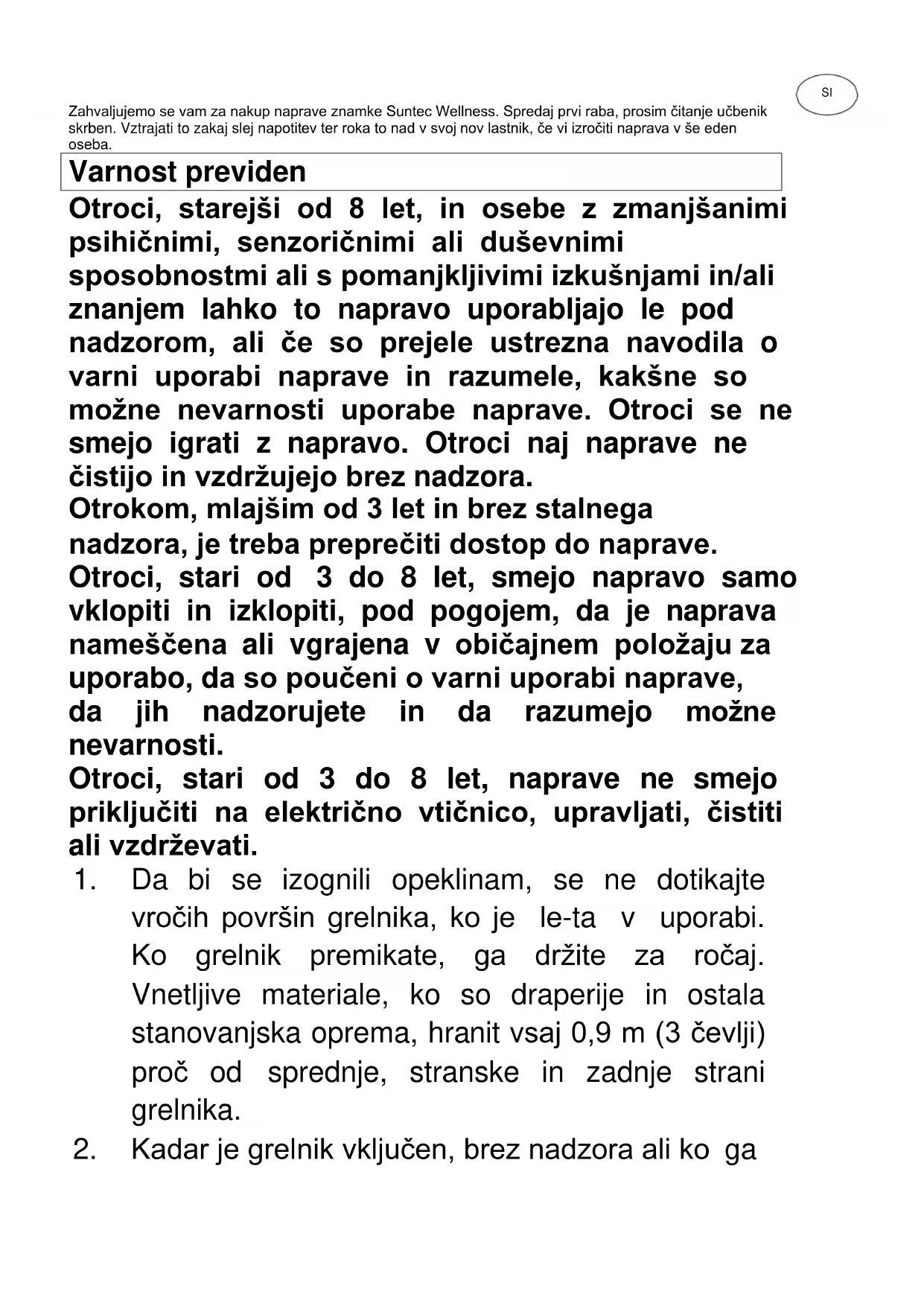 © 2020 KLIMATRONIC® Heat Supreme SUNTEC WELLNESS GMBH / HOLZSTRASSE 2 / 40221 DÜSSELDORF / GERMANYZahvaljujemo se vam za nakup naprave znamke Suntec Wellness. Spredaj prvi raba, prosim čitanje učbenik skrben. Vztrajati to zakaj slej napotitev ter roka to nad v svoj nov lastnik, če vi izročiti naprava v še eden oseba. Varnost previden Otroci, starejši od 8 let, in osebe z zmanjšanimi psihičnimi, senzoričnimi ali duševnimi sposobnostmi ali s pomanjkljivimi izkušnjami in/ali znanjem lahko to napravo uporabljajo le pod nadzorom, ali če so prejele ustrezna navodila o varni uporabi naprave in razumele, kakšne so možne nevarnosti uporabe naprave. Otroci se ne smejo igrati z napravo. Otroci naj naprave ne čistijo in vzdržujejo brez nadzora. Otrokom, mlajšim od 3 let in brez stalnega nadzora, je treba preprečiti dostop do naprave. Otroci, stari od 3 do 8 let, smejo napravo samo vklopiti in izklopiti, pod pogojem, da je naprava nameščena ali vgrajena v običajnem položaju za uporabo, da so poučeni o varni uporabi naprave, da jih nadzorujete in da razumejo možne nevarnosti. Otroci, stari od 3 do 8 let, naprave ne smejo priključiti na električno vtičnico, upravljati, čistiti ali vzdrževati.