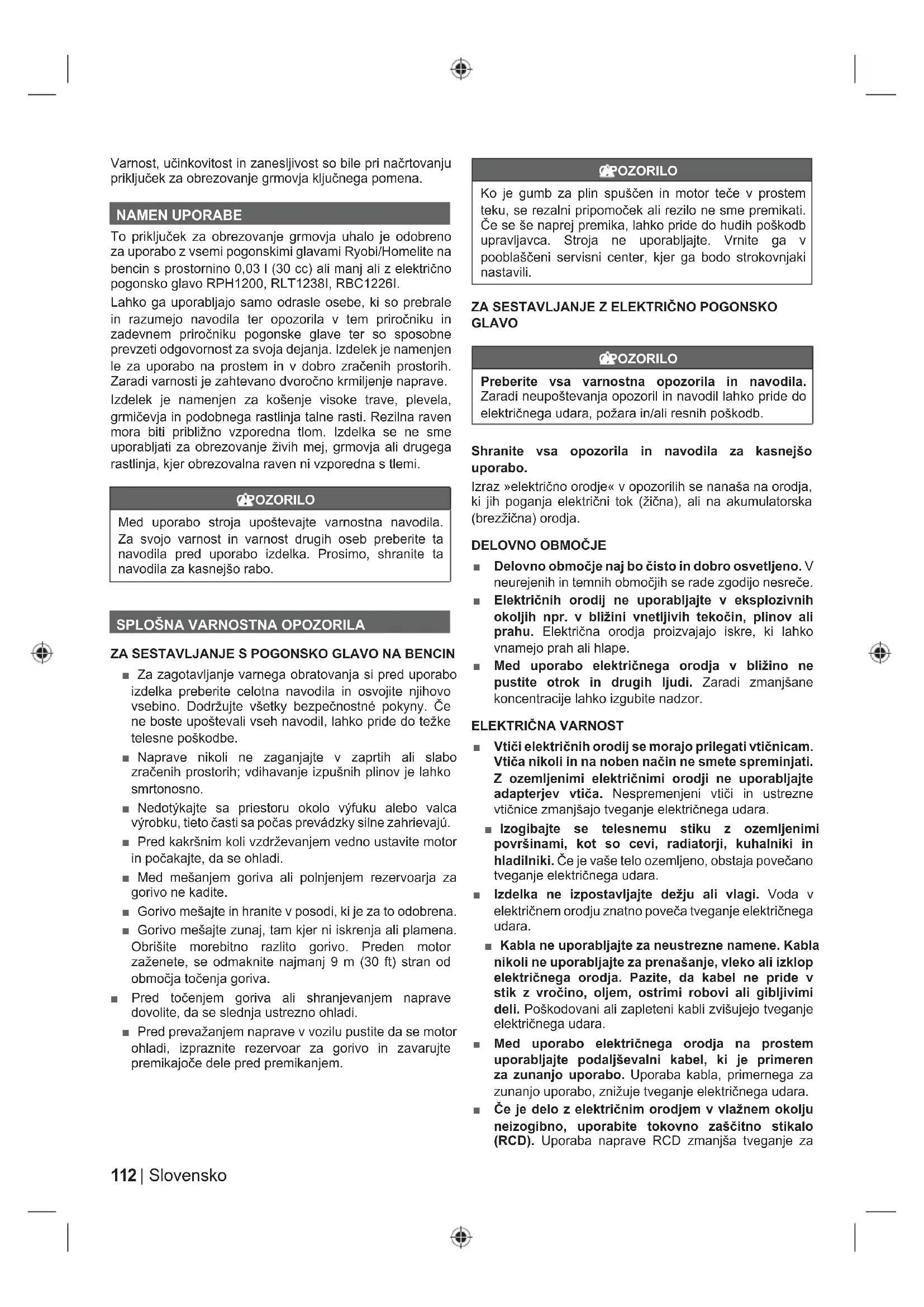 VARNOSTNA NAVODILA ZA OBREZOVALNIK