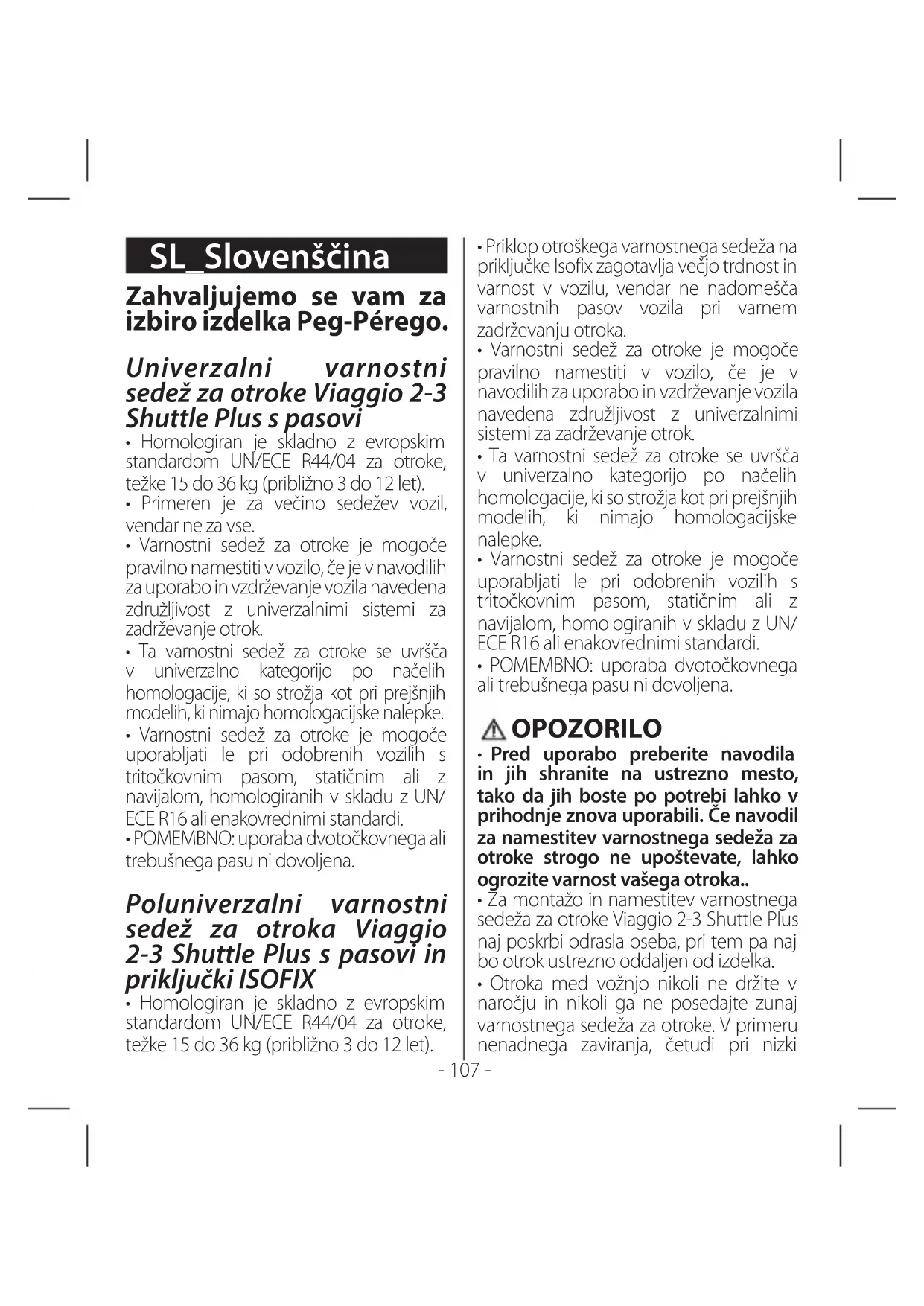 NAVODILA ZA UPORABO Viaggio 23 Shuttle Plus PEG PEREGO