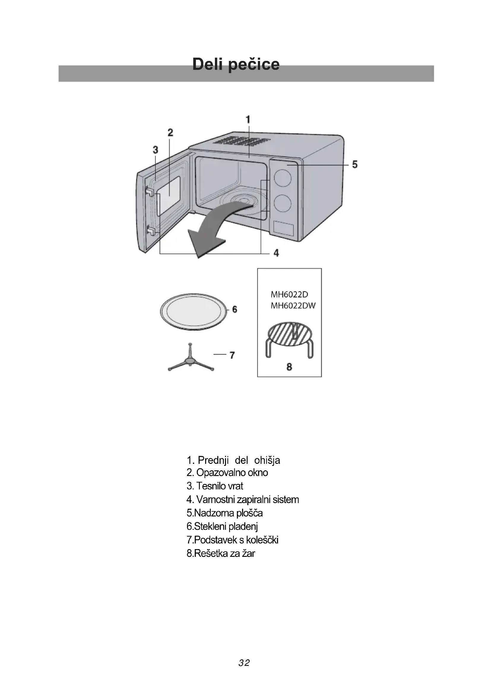 www.lg.com Prosimo, da ta uporabniški priročnik pred prvo uporabo skrbno preberete. SLOVENSKY MS2022D/MS2022DW MH6022D/MH6022DW1. Prednji del ohišja