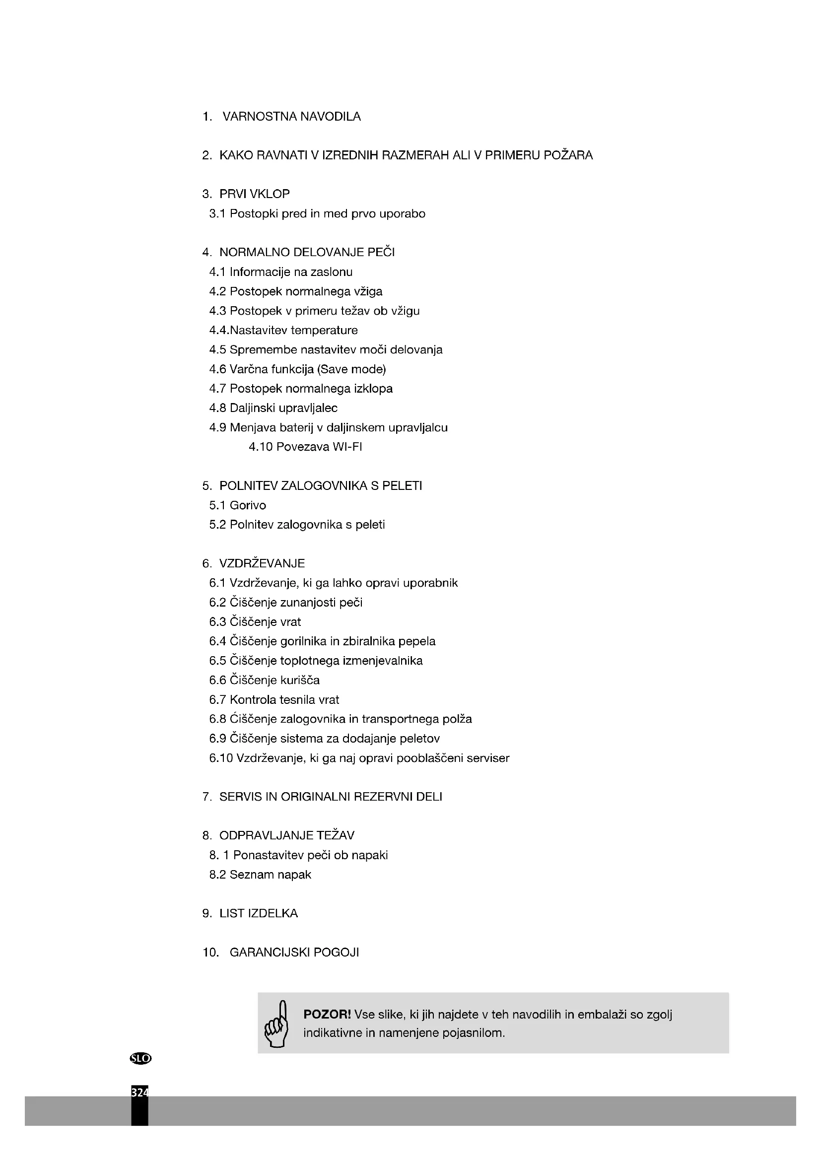 - Peč je lahko vgrajena le v prostorih kjer njena postavitev, konstrukcija zgradbe in uporaba prostora ne preprečujejo ali ovirajo varne upo- rabe peči. y326 V primeru težav s pečjo in v primeru, da Vam ta navodila niso razumljiva takoj pokličite servis.