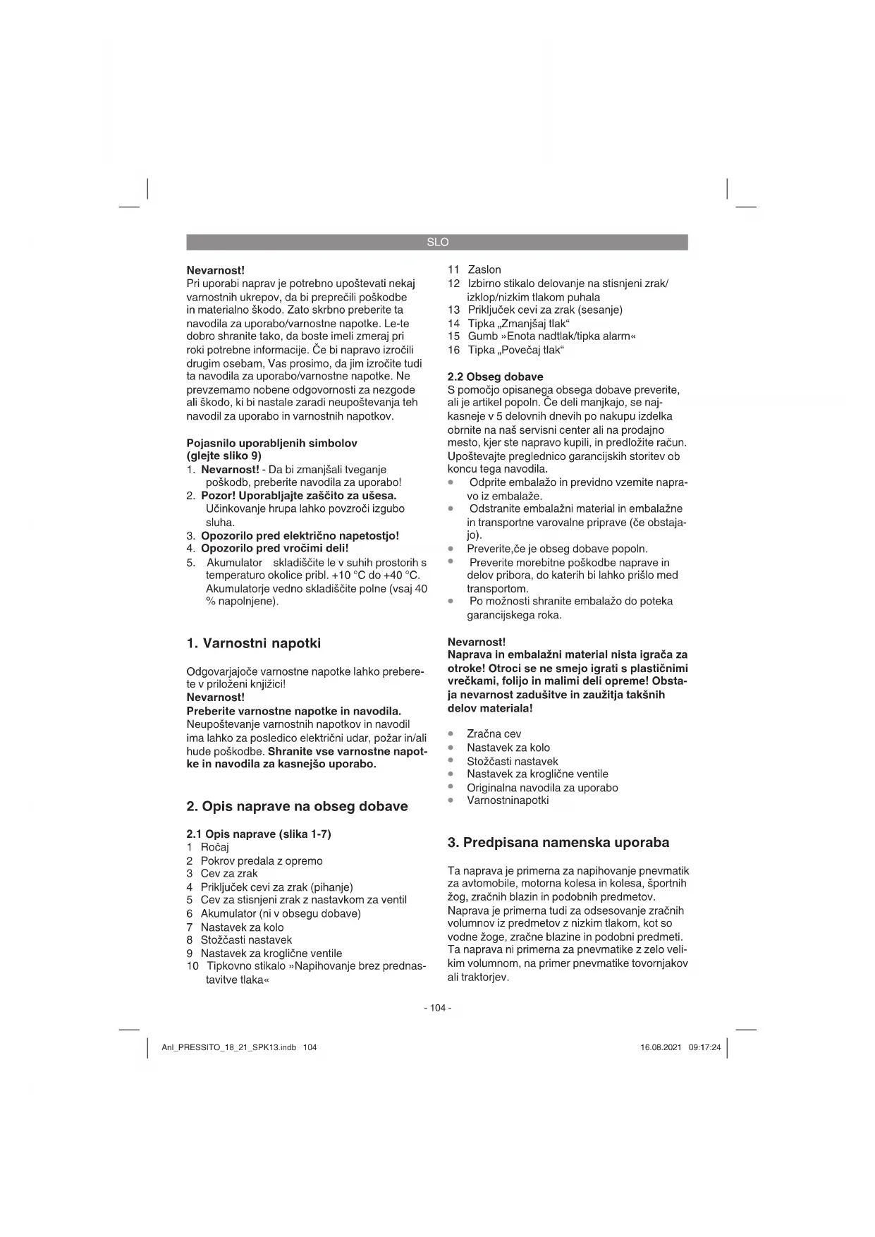 Odgovarjajoche varnostne napotide lahko prebere- te v prilozeni knjižici!