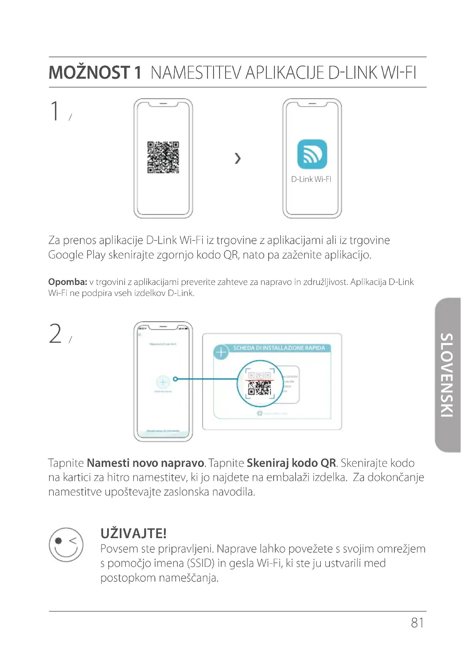 UŽIVAJTE! Povsem ste pripravljeni. Naprave lahko povežete s svojim omrežjem s pomočjo imena (SSID) in gesla Wi-Fi, ki ste ju ustvarili med postopkom nameščanja.