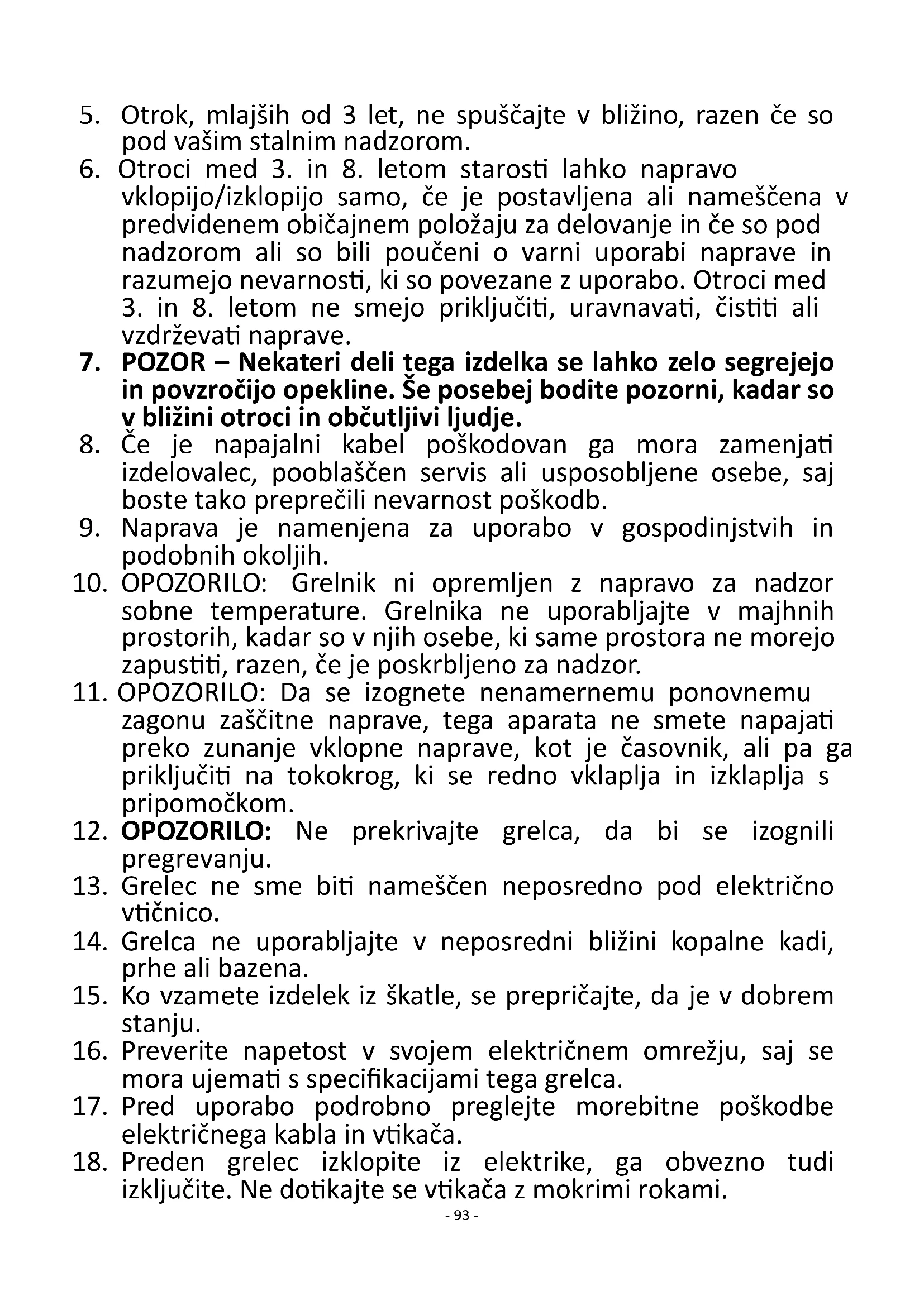 poškodovana. Če grelnik ne deluje pravilno ali vam je padel- 95 - oz. se kakor koli drugače poškodoval, izdelek nesite serviserju, da ga pregleda ter popravi.