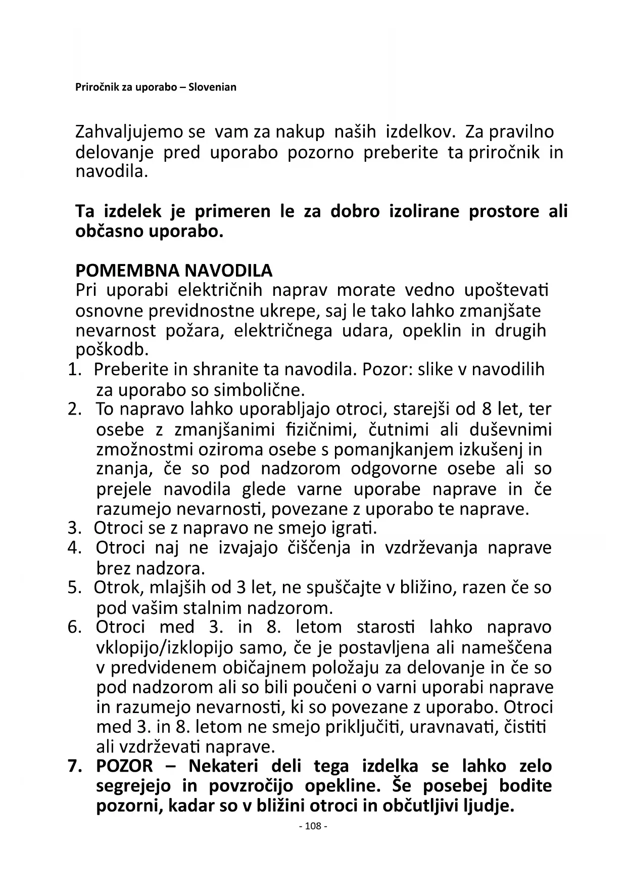 7. POZOR – Nekateri deli tega izdelka se lahko zelo