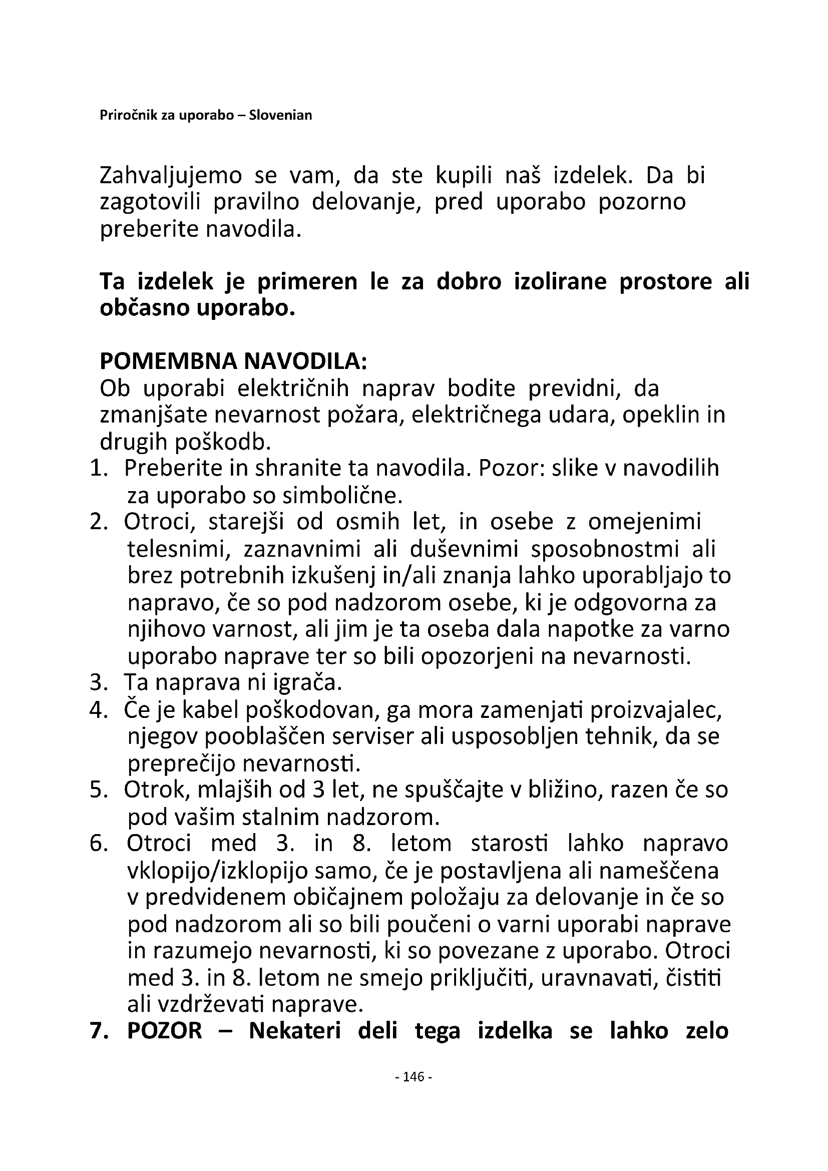 7. POZOR – Nekateri deli tega izdelka se lahko zelo- 147 -