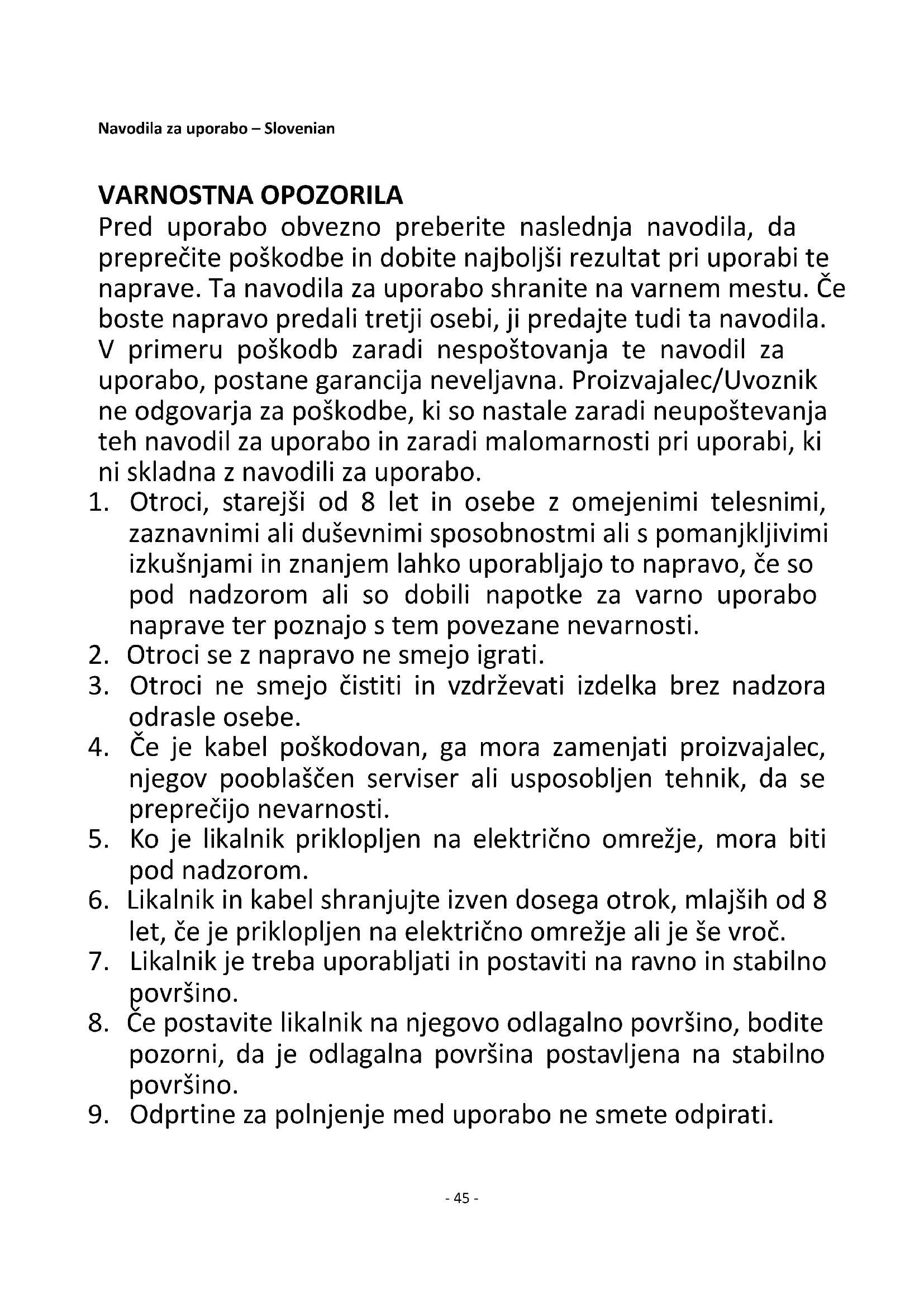 3. Otroci ne smejo čistiti in vzdrževati izdelka brez nadzora
