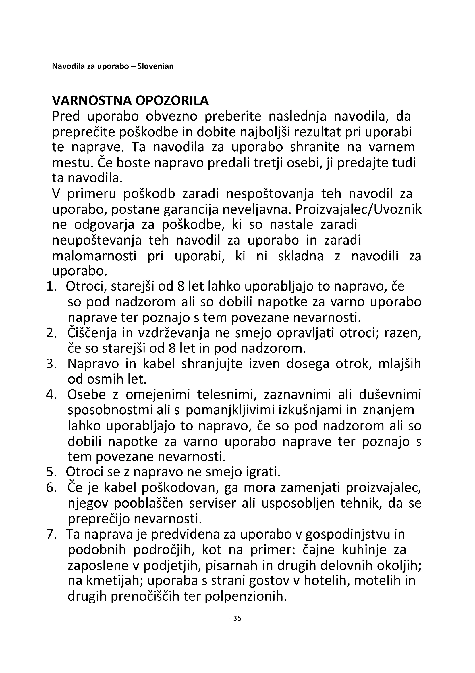 7. Ta naprava je predvidena za uporabo v gospodinjstvu in