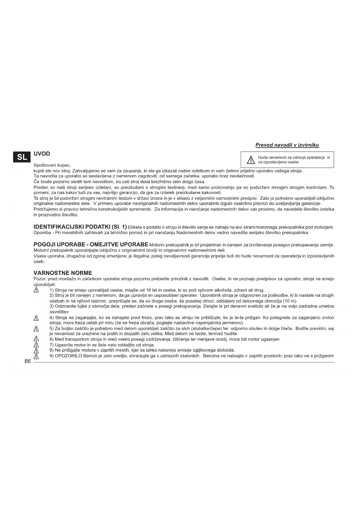 Huda nevarnost za zdravje operaterja in za izpostavljene osebe Prevod navodil v izvirniku87