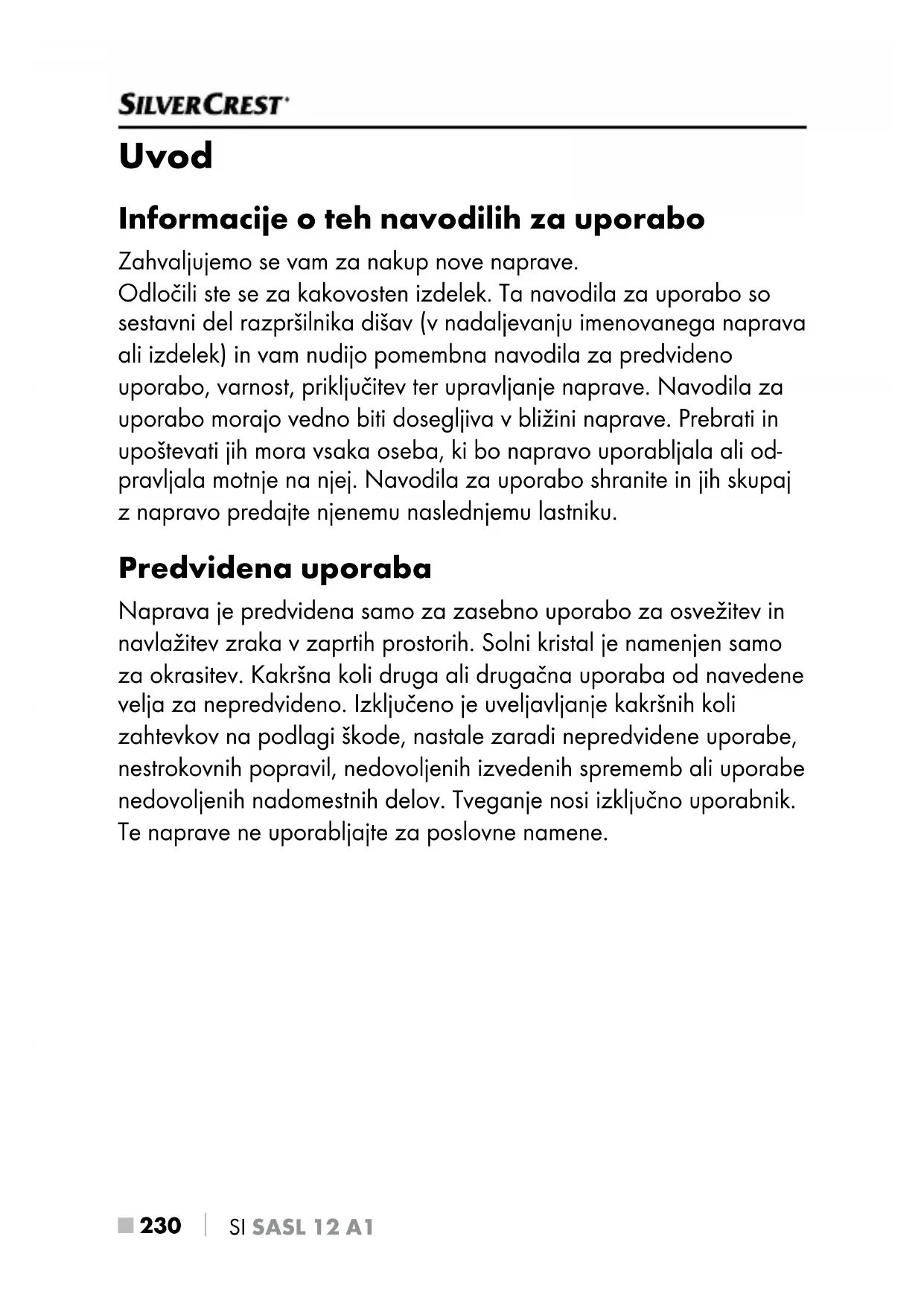 NAVODILA ZA UPORABO SASL 12 A1 SILVERCREST