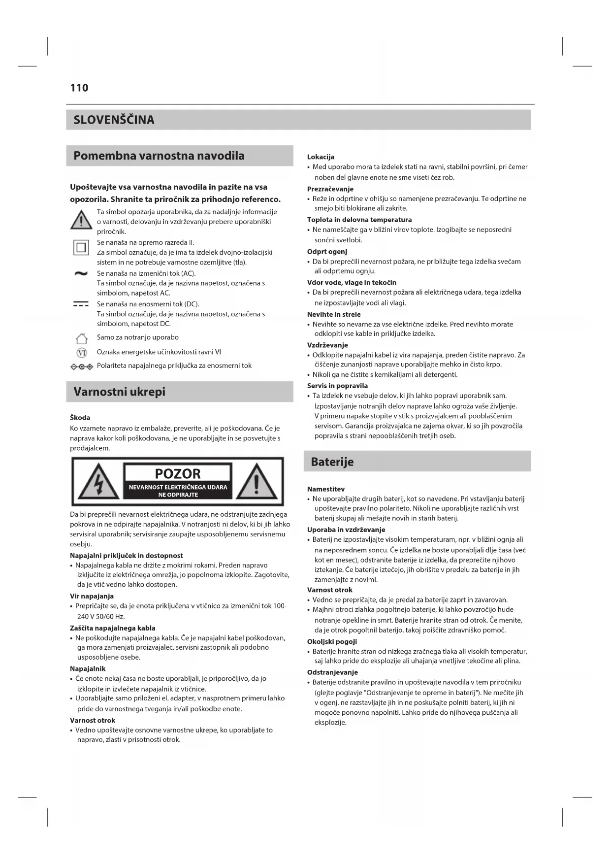 - Uporabljajte samo priloženi el. adapter, v nasprotnem primeru lahko pride do varnostnega tveganja in/ali poškodbe enote. Varnost otrok
