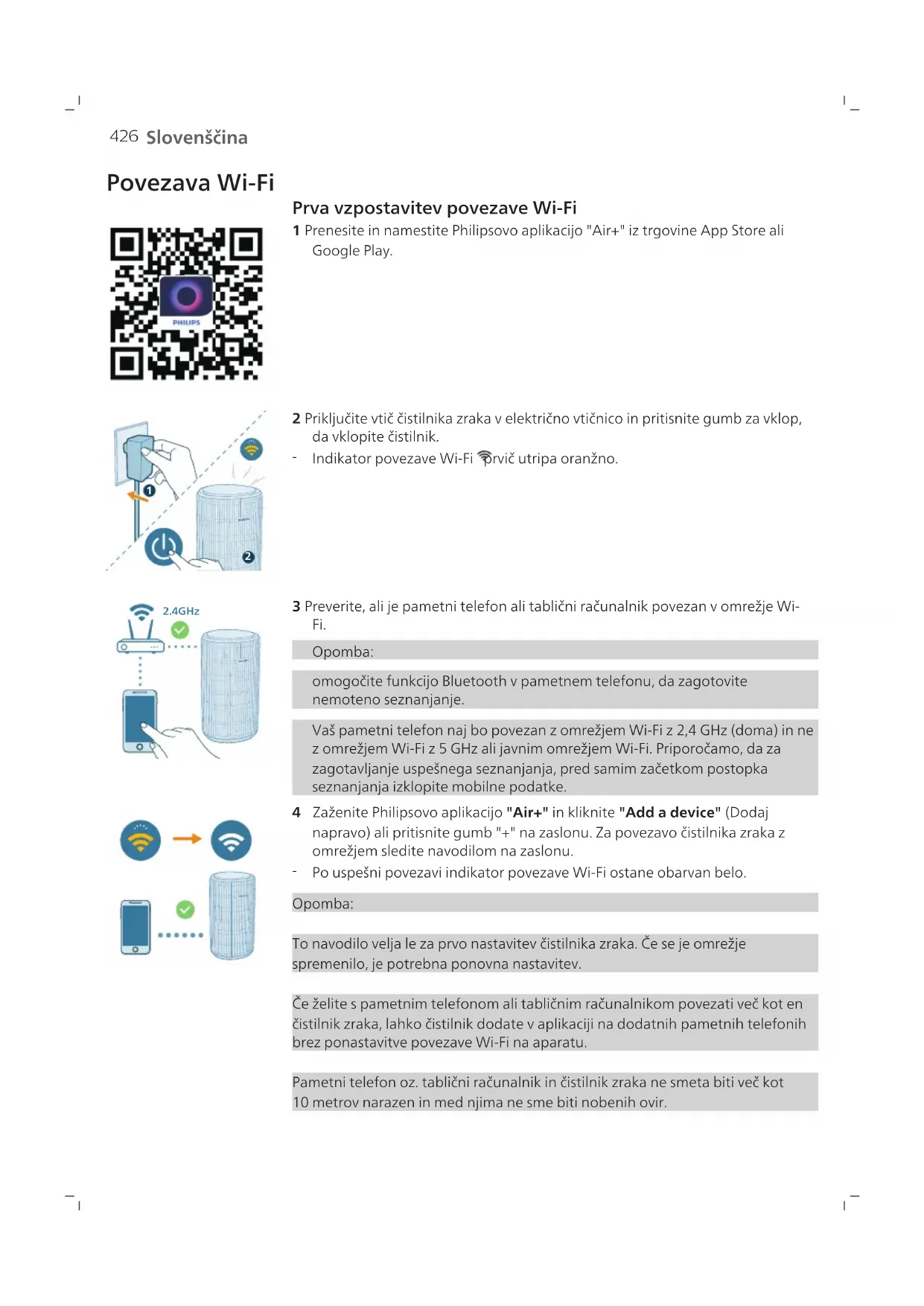 Vaš pametni Telefon raj bo povezan z omrežjem Wi-Fi z 2,4 GHz (doma) in nez omrežjem Wi-Fi z 5 GHz ali javnim omrežjem Wi-Fi. Priporočamo, da za zagotavljanje uspešnegа seznanja, pred samim začekom postopka seznanja izklopite mobilne podatke.