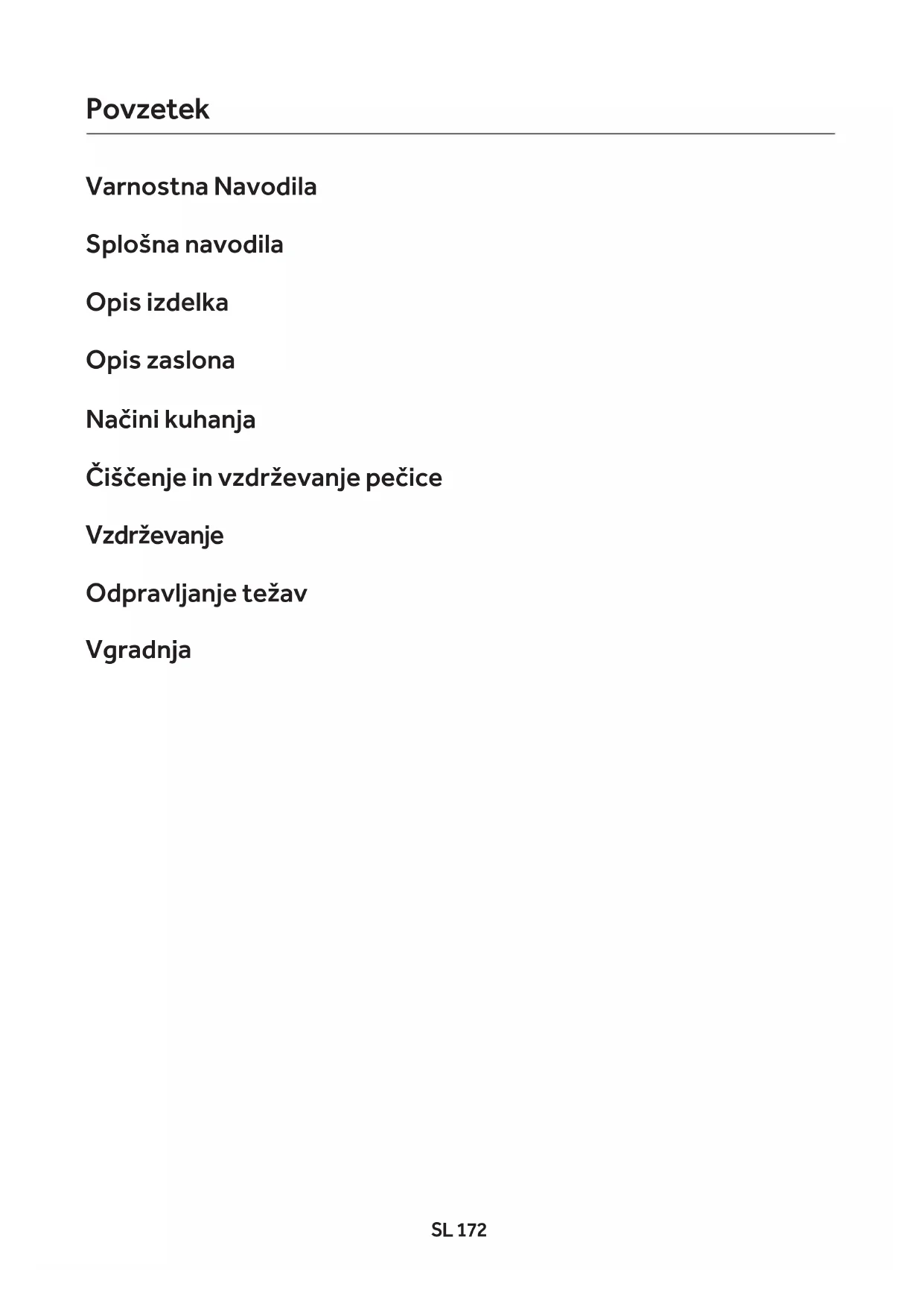 - Za čiščenje stekla na vratih pečice ne uporabljajte abrazivnih in grobih materialov ali ostrih kovinskih strgal, saj lahko povzročijo praske na stekleni površini, ki lahko povzročijo pokanje stekla. Varnostna NavodilaSL 174