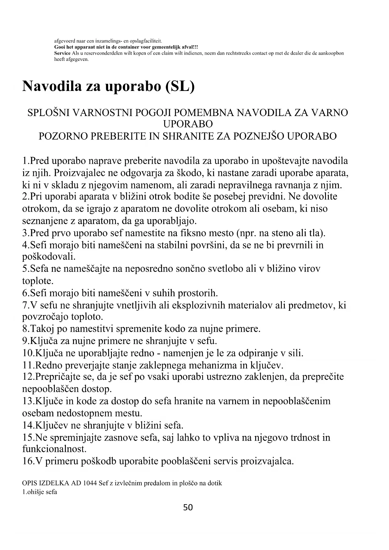 NAVODILA ZA UPORABO AD 1044 ADLER