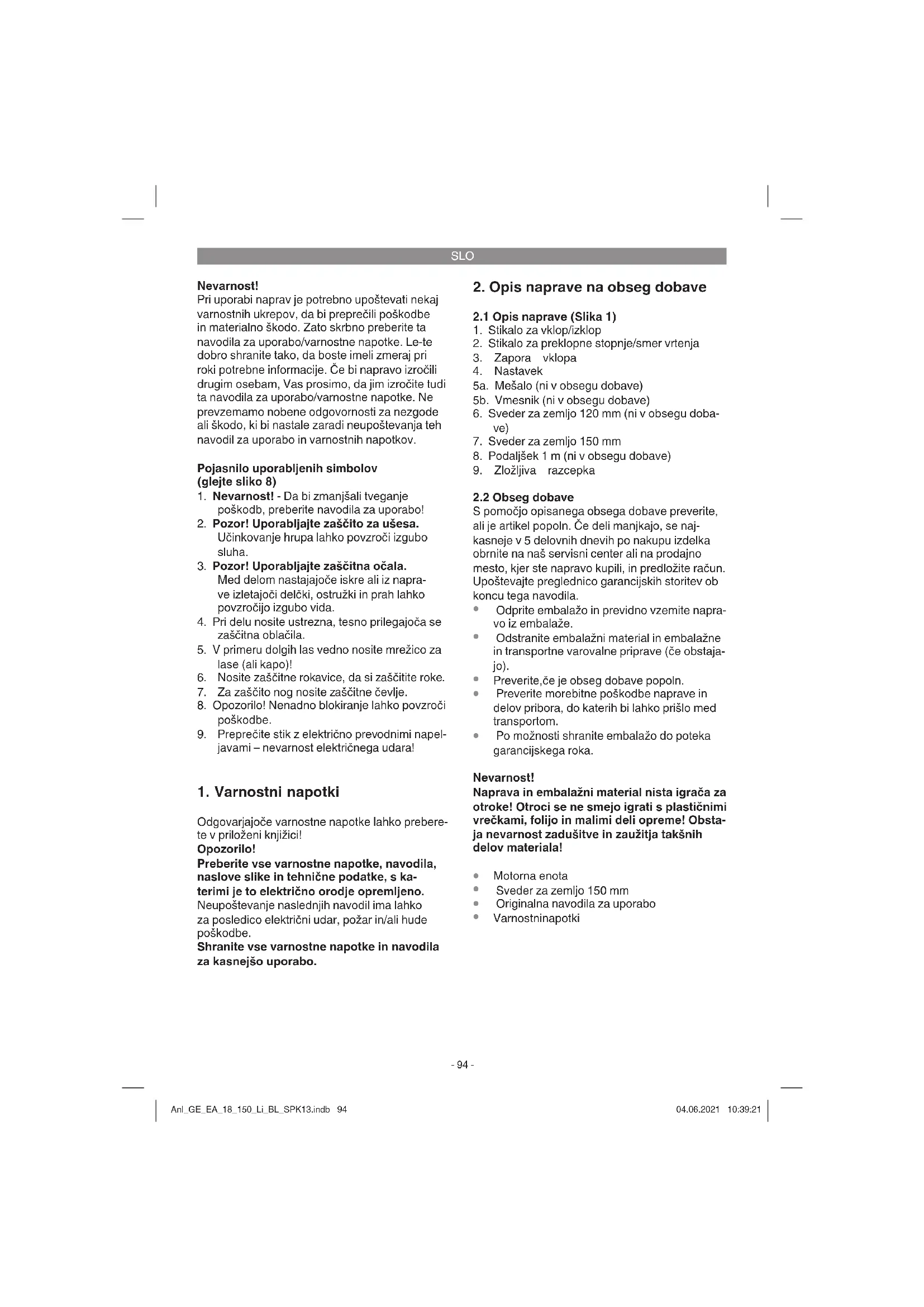 rok, če dlje časa uporabljate napravo ali, če je ne uporabljate in vzdržujete pravilno. Anl_GE_EA_18_150_Li_BL_SPK13.indb 95Anl_GE_EA_18_150_Li_BL_SPK13.indb 95 04.06.2021 10:39:2104.06.2021 10:39:21SLO