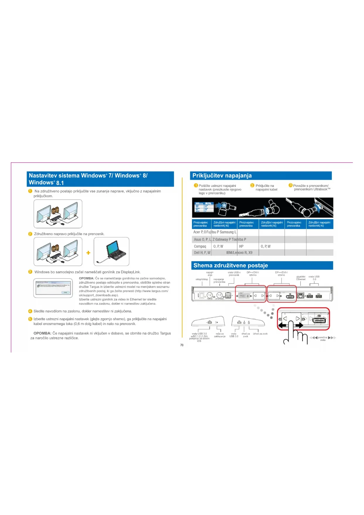 Prenesite navodila za vaš Postaja za priklop v formatu PDF brezplačno! Poiščite svoja navodila ACP77EUZ - TARGUS in vzemite svojo elektronsko napravo nazaj v roke. Na tej strani so objavljeni vsi dokumenti, potrebni za uporabo vaše naprave. ACP77EUZ znamke TARGUS.