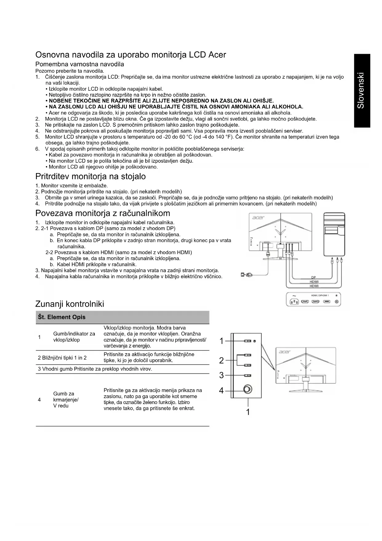 S tem druzba Acer Inc. izavla, da je ta monitor LCD v skladu z bistvenimi zahevami in drugimi ustreznimi dolocii direktive o elektromagnetni zdruzljivosti 2014/30/EU, direktive o nizki napetosti 2014/35/EU, direktive RoHS 2011/65/EU in direktive 2009/125/ES glede vzpostavljanja okvira za dolocanje zahev okolju prijaznezasnove energetskih izdelkov.