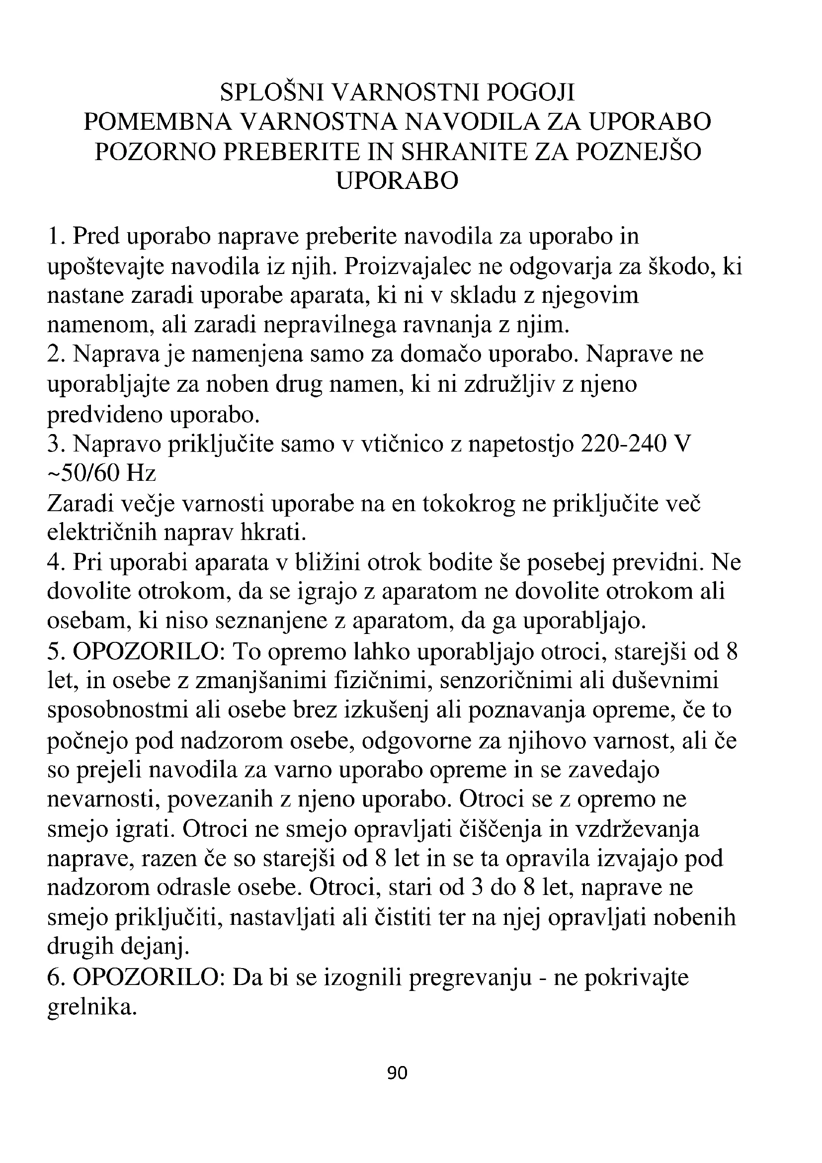 SPLOŠNI VARNOSTNI POGOJI