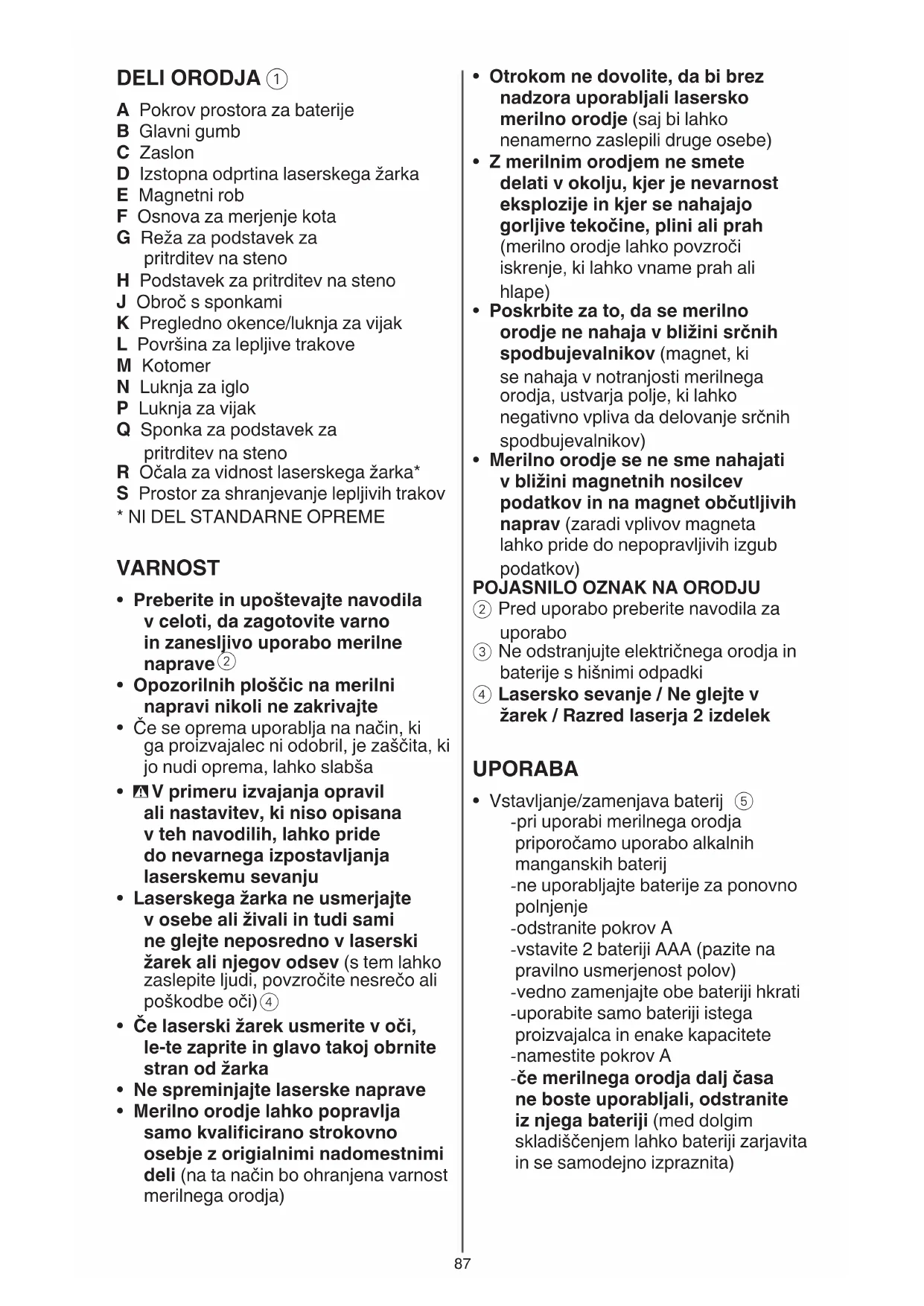 - -V primeru izvajanja opravil ali nastavitev, ki niso opisana v teh navodilih, lahko pride do nevarnega izpostavljanja laserskemu sevanju