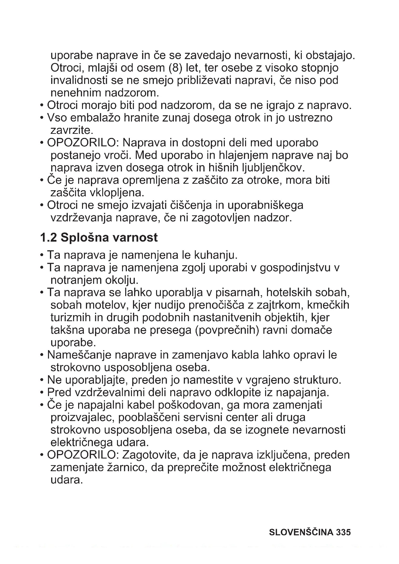 - OPOZORILO: Zagotovite, da je naprava izključena, preden zamenjate žarnico, da preprečite možnost električnega udara. SLOVENŠČINA 335• OPOZORILO: Naprava in dostopni deli med uporabo postanejo vroči. Pazite, da se ne dotaknete grelcev ali površine naprave.