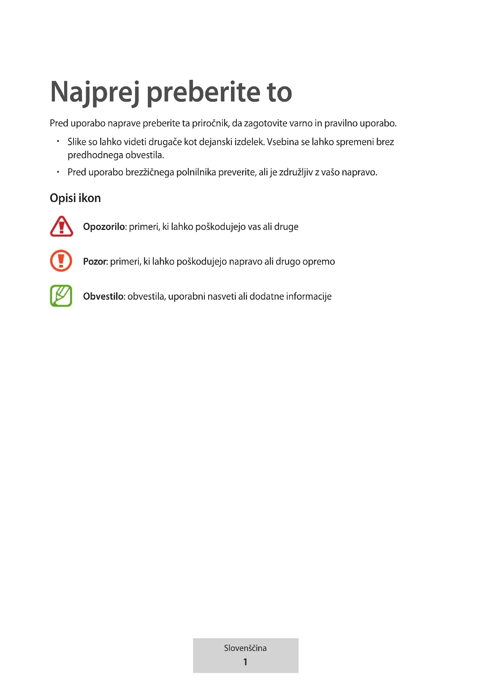 Indikatorska lučka lahko deluje drugače, odvisno od mobilne naprave ali brezžičnega polnilnega pokrova.10 Slovenščina Avtorske pravice Avtorske pravice © 2020 Samsung Electronics Co., Ltd. Ta priročnik je zaščiten z mednarodnimi zakoni o avtorskih pravicah. Nobenega dela tega priročnika ni dovoljeno reproducirati, distribuirati, prevesti ali prenašati v kakršnikoli obliki ali na kakršenkoli način, v elektronski ali mehanski obliki, vključno s fotokopiranjem, snemanjem ali shranjevanjem v kakršnemkoli sistemu za shranjevanje in pridobivanje podatkov. Blagovne znamke