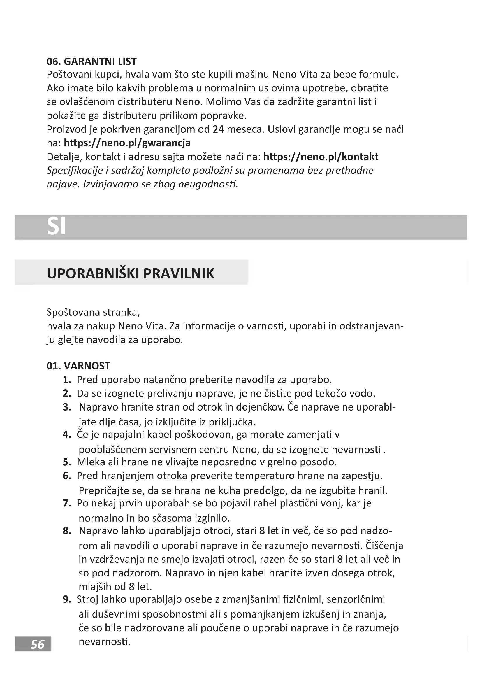 Spoštovana stranka, hvala za nakup Neno Vita. Za informacije o varnos, uporabi in odstranjevan- ju glejte navodila za uporabo.