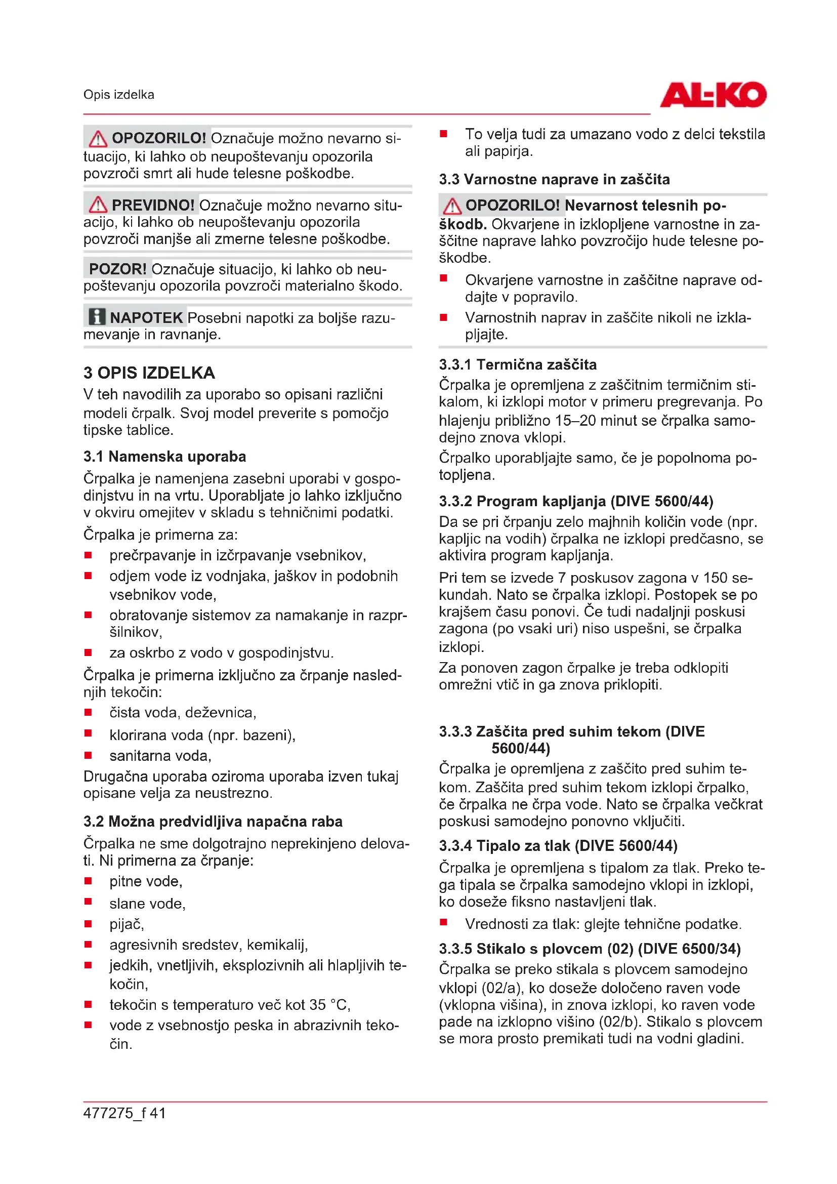 NAVODILA ZA UPORABO Dive 63004 AL-KO