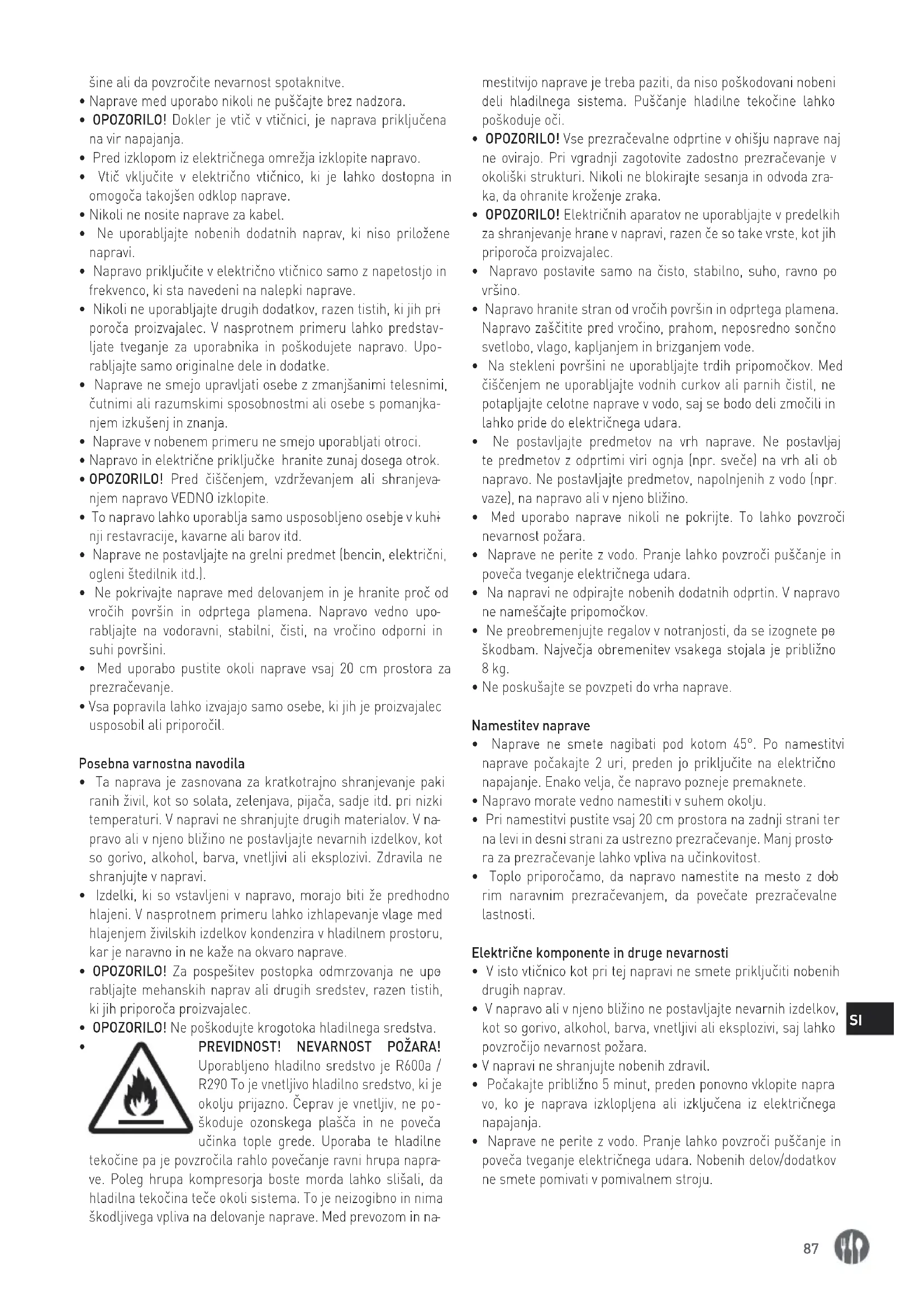 - OPOZORILO! Električnih aparatov ne uporabljajte v predelkih za shranjevanje hrane v napravi, razen če so take vrste, kot jih priporoča proizvajalec.