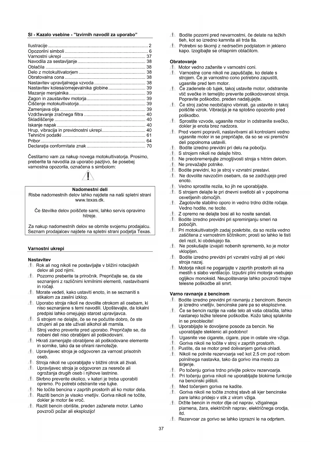 TX612TG - Motokultivator Texas - Brezplačna navodila za uporabo
