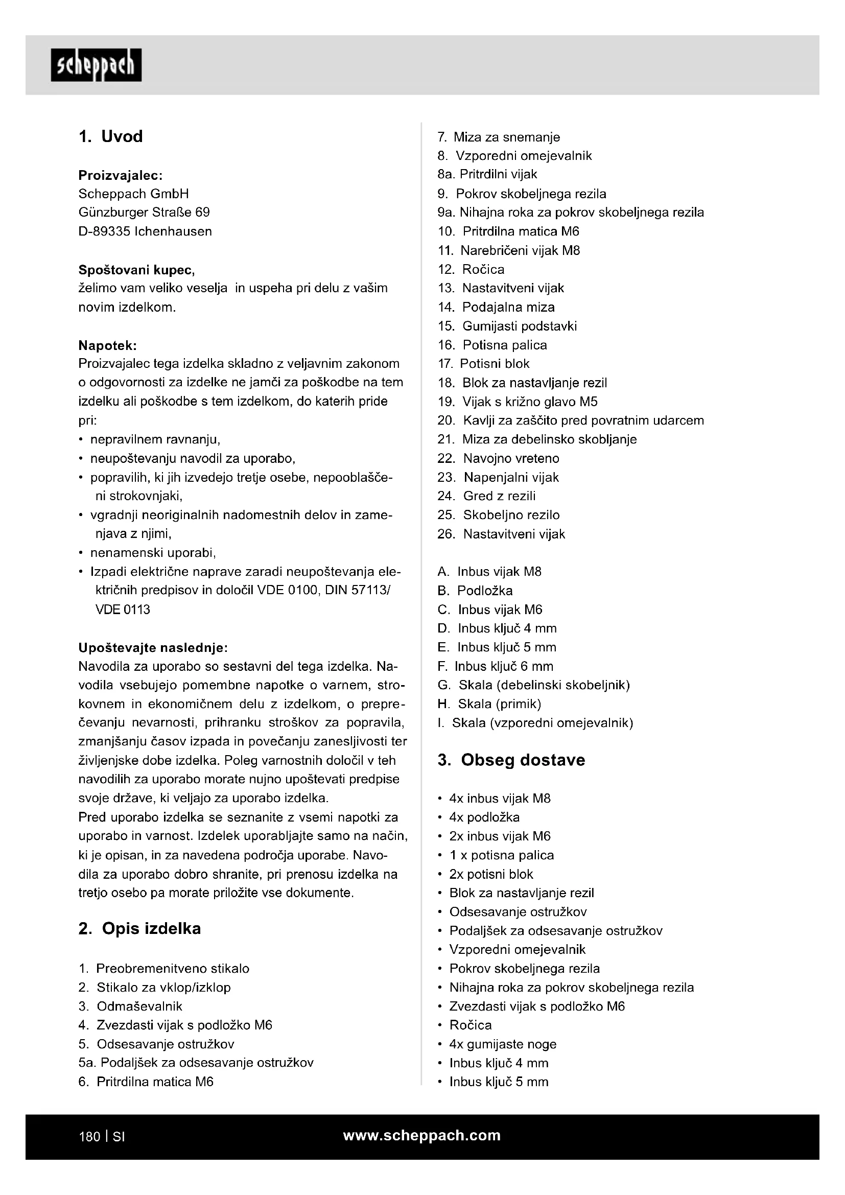 - Ob neuporabi električnega orodja, pred vzdrže- vanjem in pri menjavi orodij, kot npr. žagin list, sveder, rezkalnik.www.scheppach.com