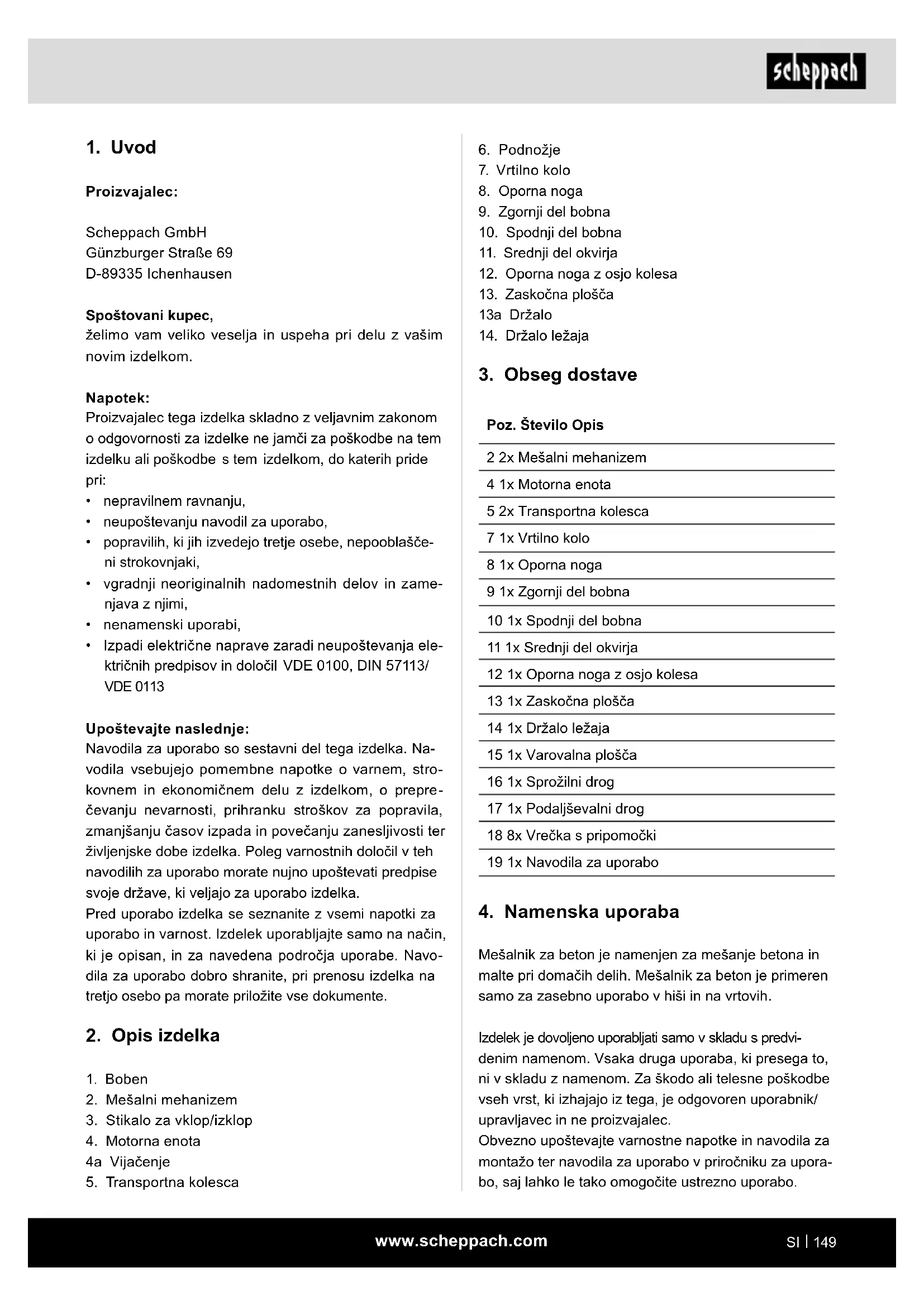 MIX180 - Mešalnik cementa SCHEPPACH - Brezplačna navodila za uporabo