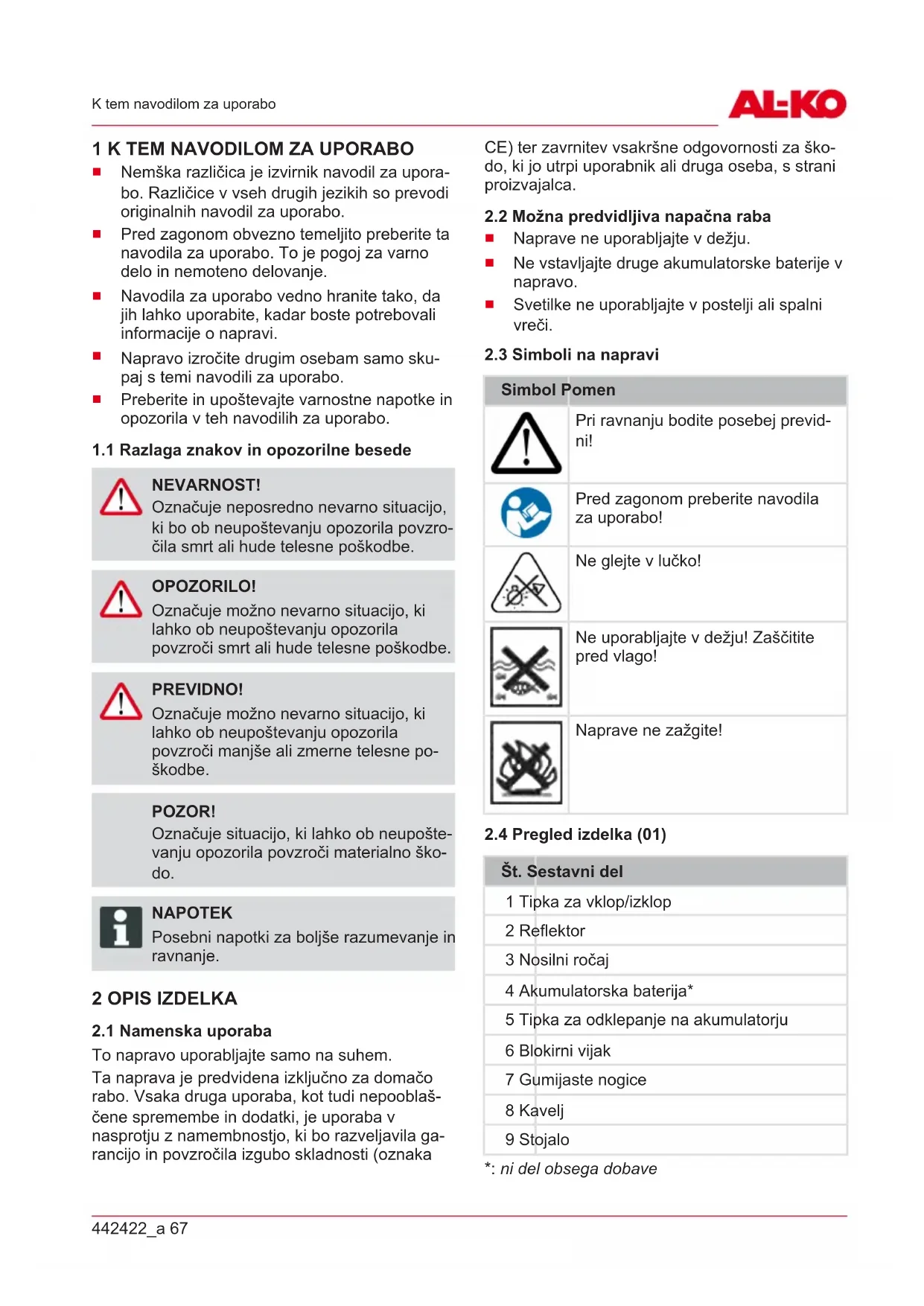 1.1 Razlaga znakov in opozorilne besede
