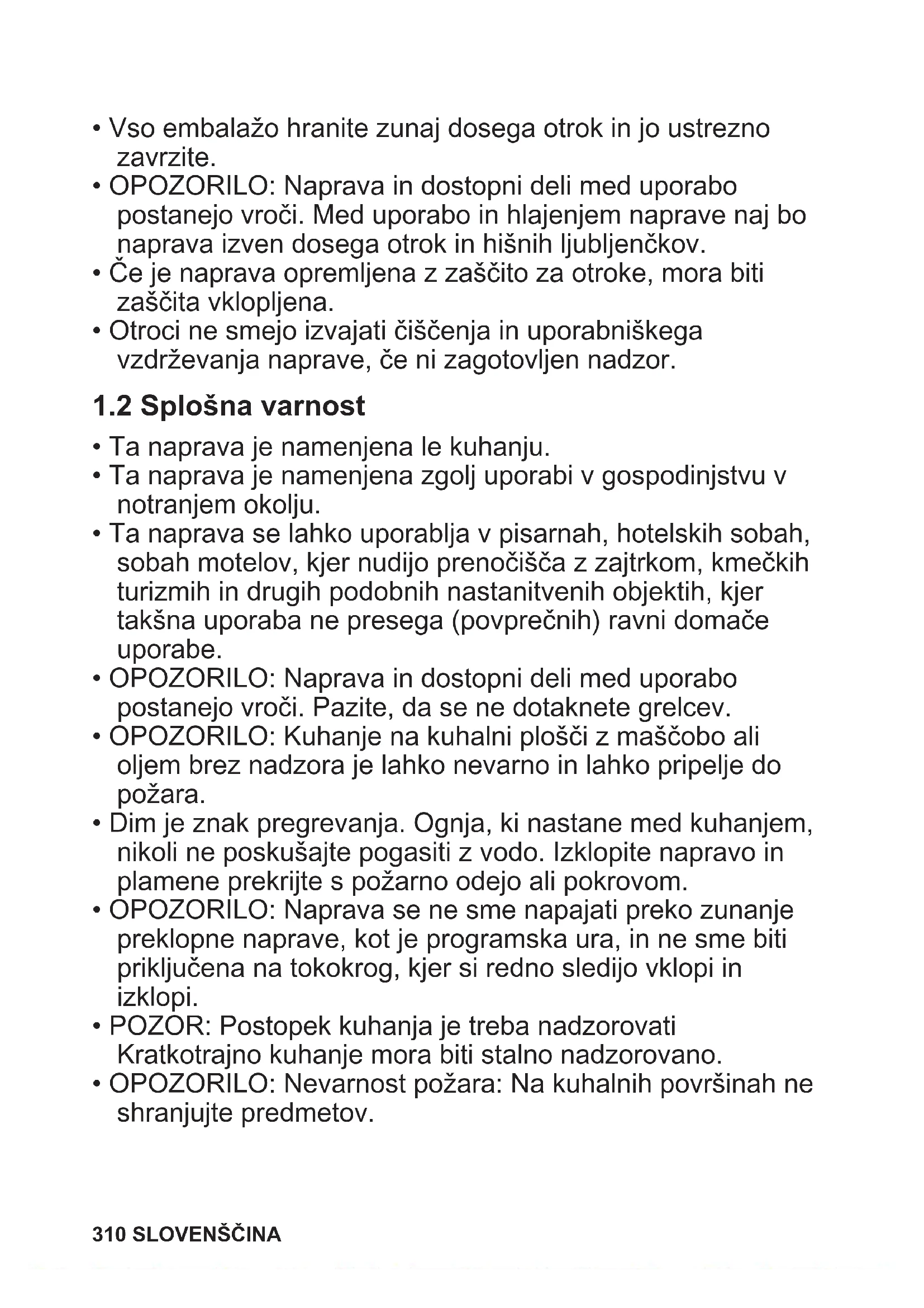 - POZOR: Postopek kuhanja je treba nadzorovati Kratkotrajno kuhanje mora biti stalno nadzorovano.