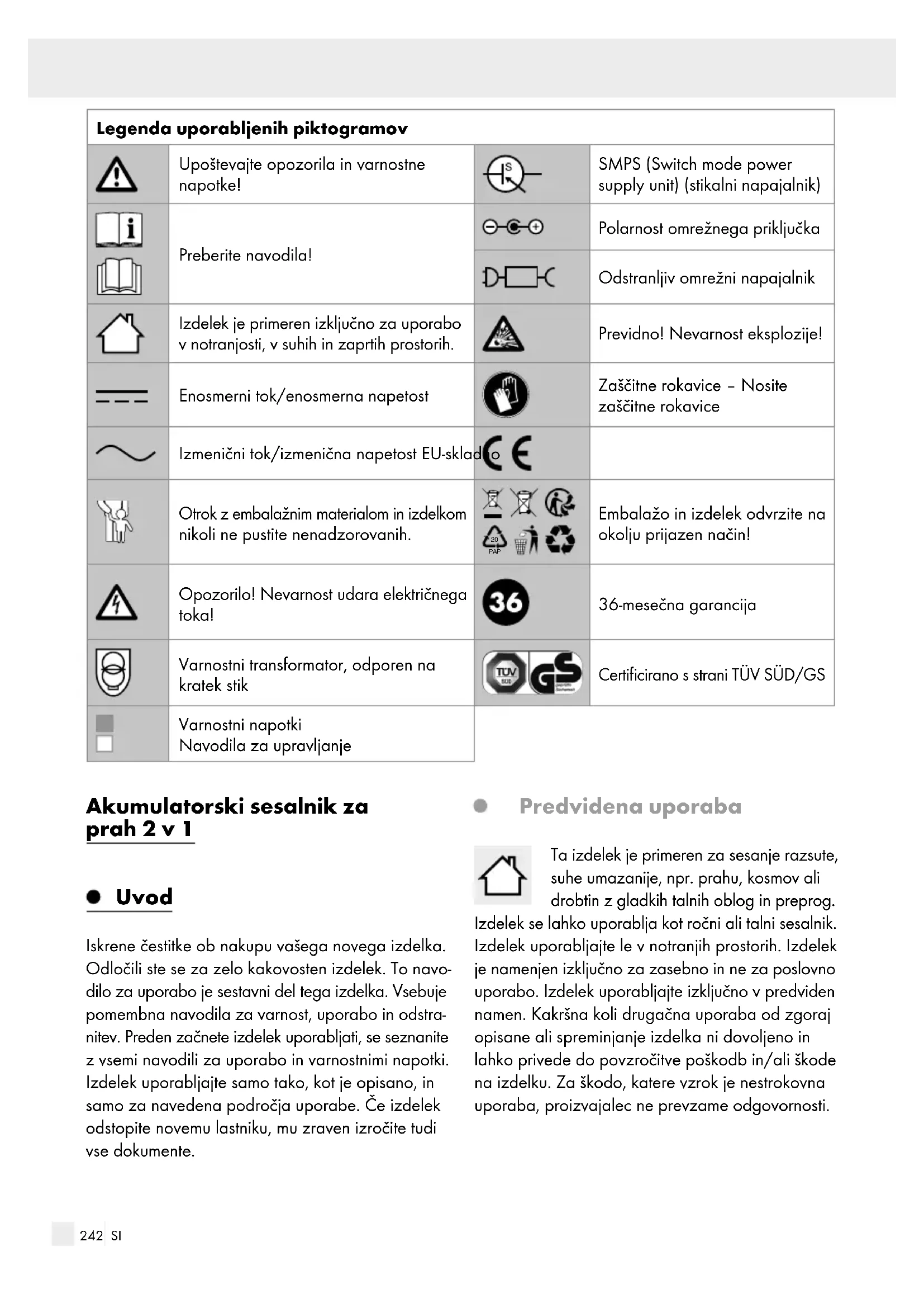 Iskrene cestitke ob nakupu vasega novega izdelka. Odlocili ste se za zelo kakovosten izdelek. To navodilo za uporabo je sestavni del tega izdelka. Vsebuje pomembna navodila za varnost, uporabo in odstranitev. Preden zacnete izdelek uporabljiati, se sznanitez vsemi navodili za uporabo in varnostnimi napotki. Izdelek uporabljaite samtako, kot je opisano, in samo za navedena podrocja uporabe. Ce izdelek odstopite novemu lastniku, mu zraven izrocite tudive dokunte.