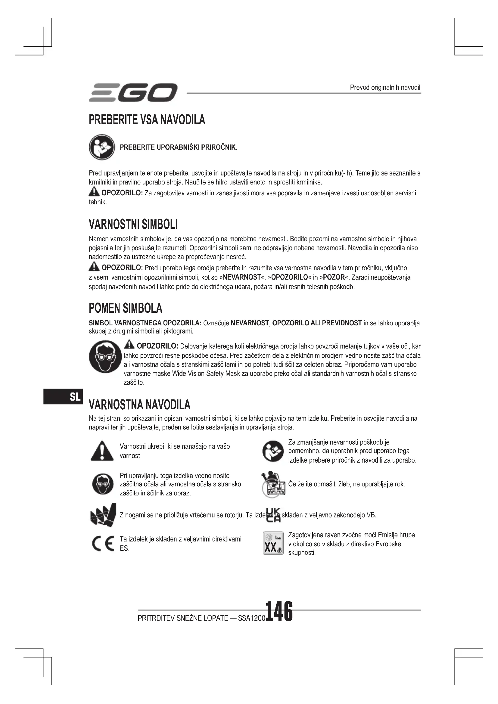 NAVODILA ZA UPORABO SSA1200 EGO
