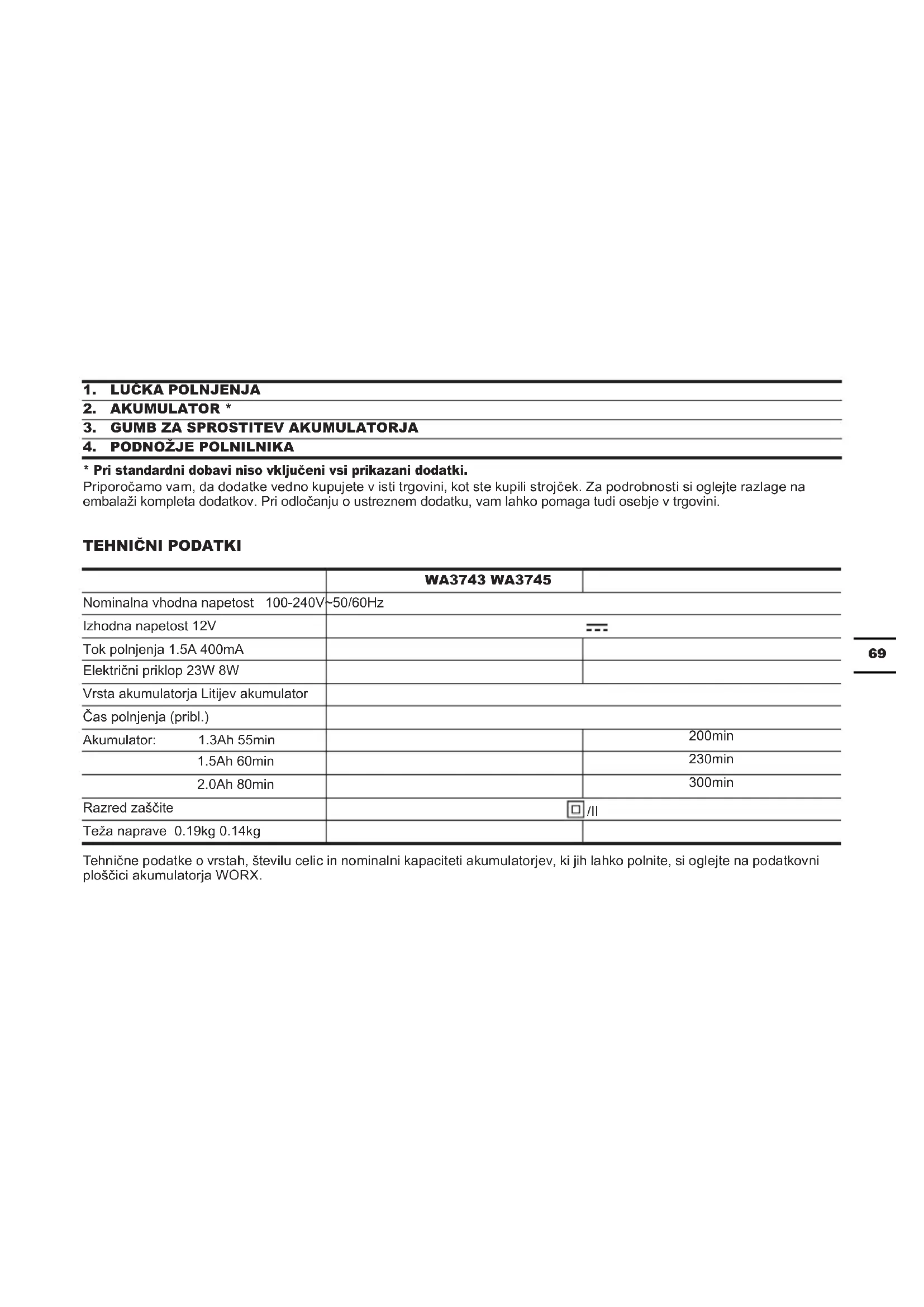 modelov WORX oziroma modelov, ki jih priporoča WORX.71 SIMBOLI POSTOPEK POLNJENJA OPOMBA:Preden začnete uporabljati strojček, si pozorno preberite navodila.