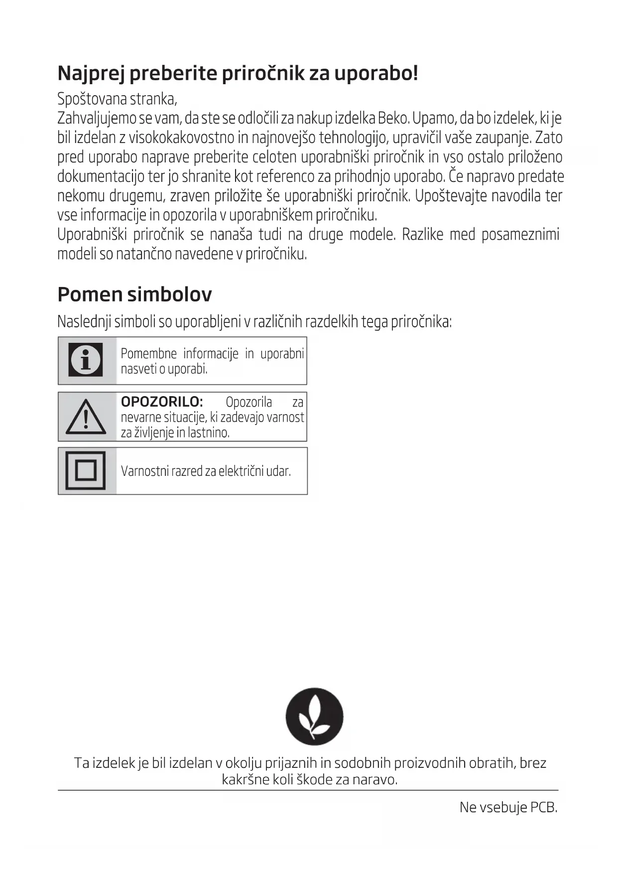 NAVODILA ZA UPORABO VCO 42701 AR BEKO