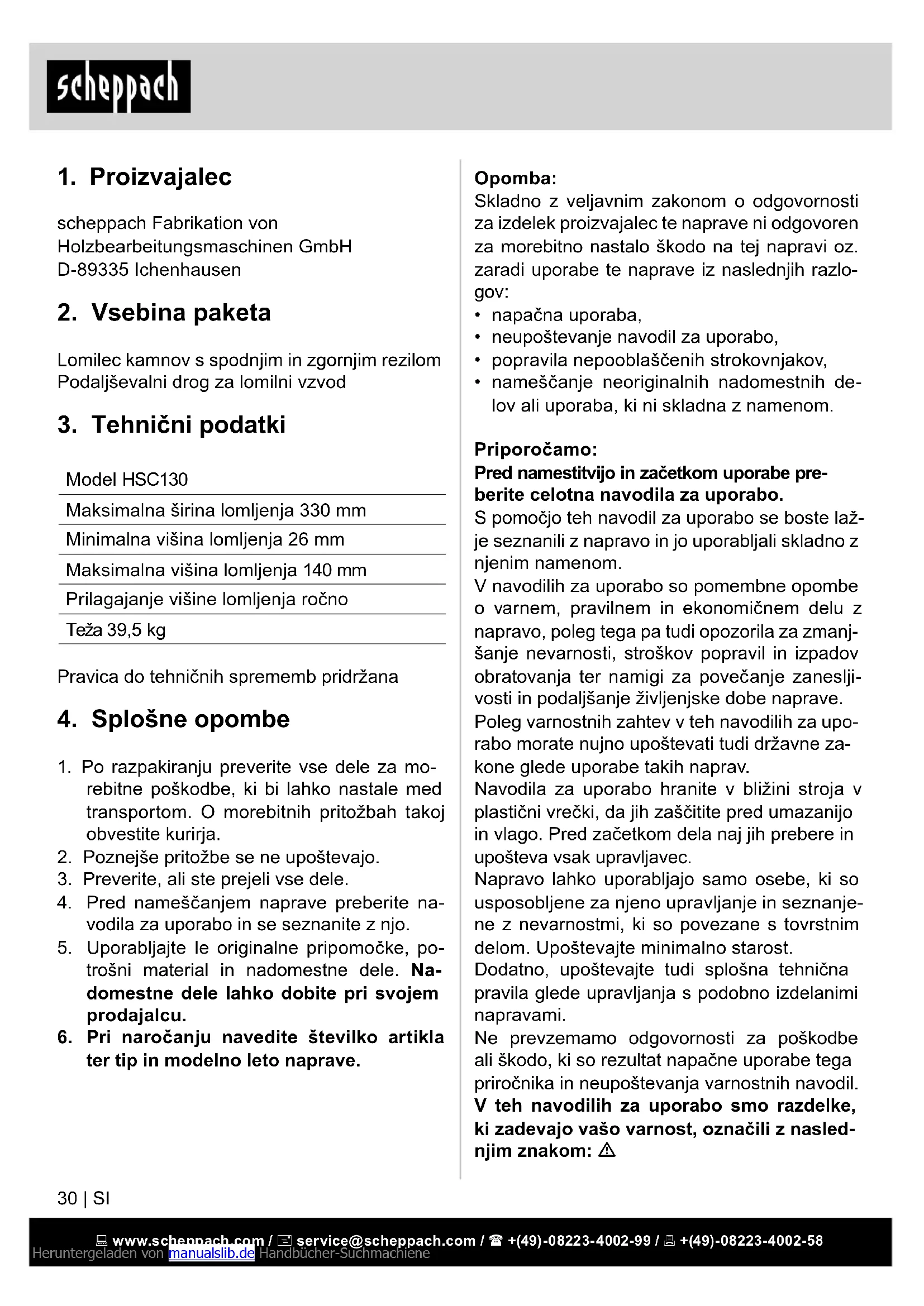 NAVODILA ZA UPORABO HSC130 SCHEPPACH