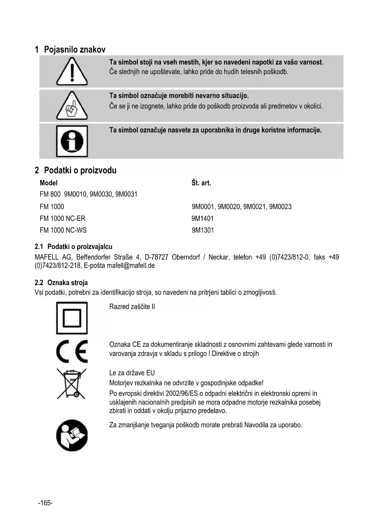 NAVODILA ZA UPORABO FM 800 Mafell