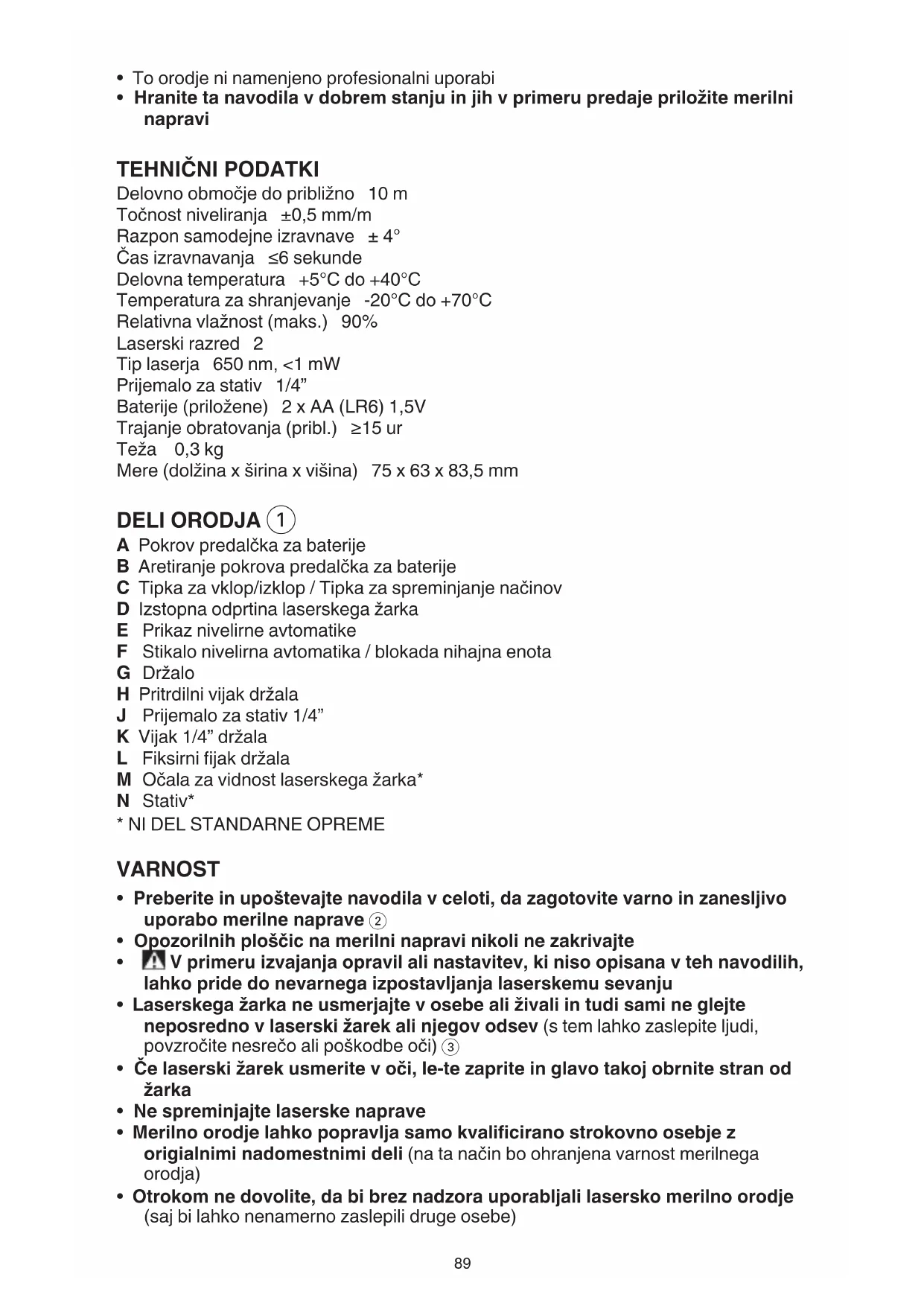 - Otrokom ne dovolite, da bi brez nadzora uporabljali lasersko merilno orodje (saj bi lahko nenamerno zaslepili druge osebe)90