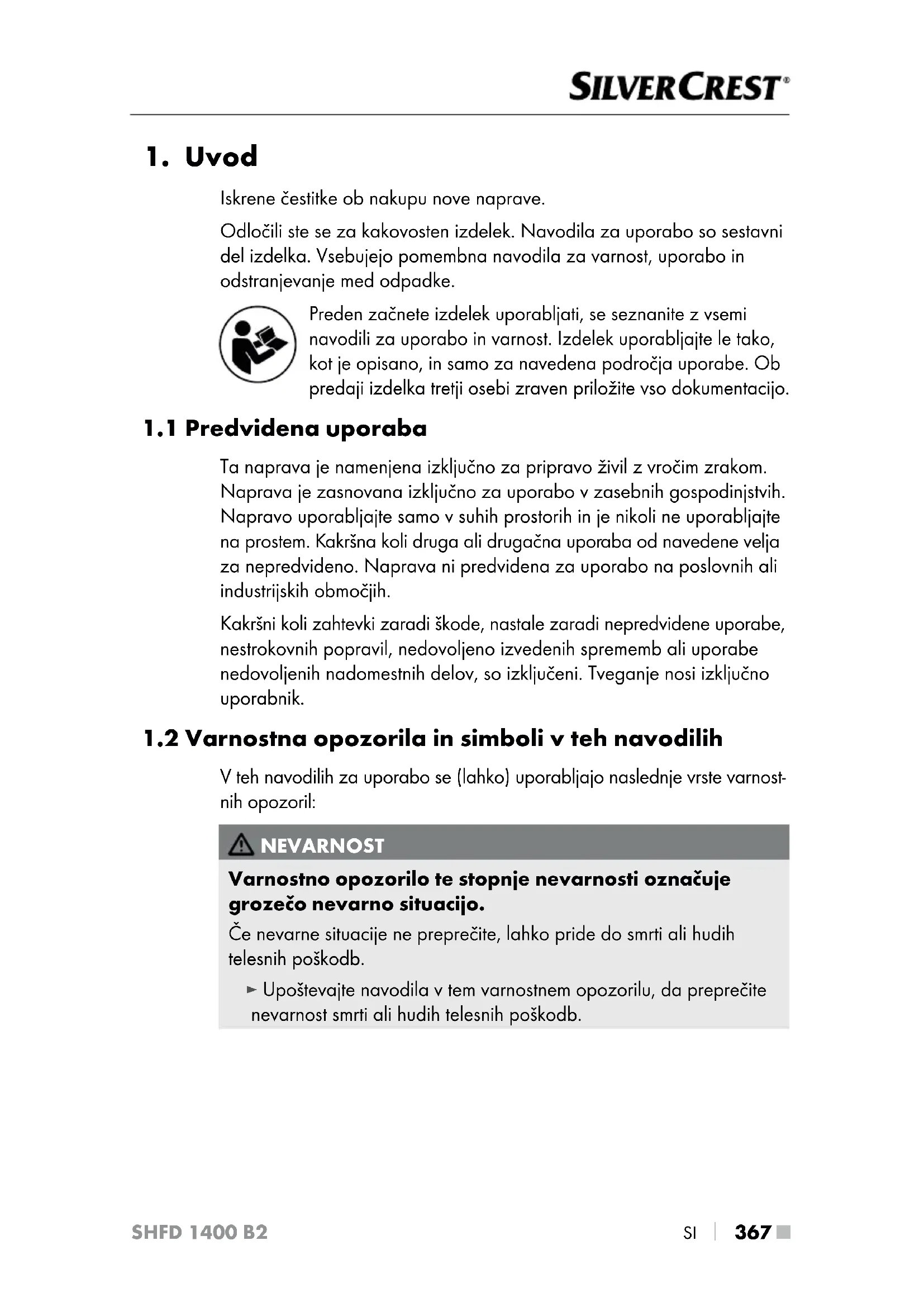 NAVODILA ZA UPORABO SHFD 1400 B2 SILVERCREST